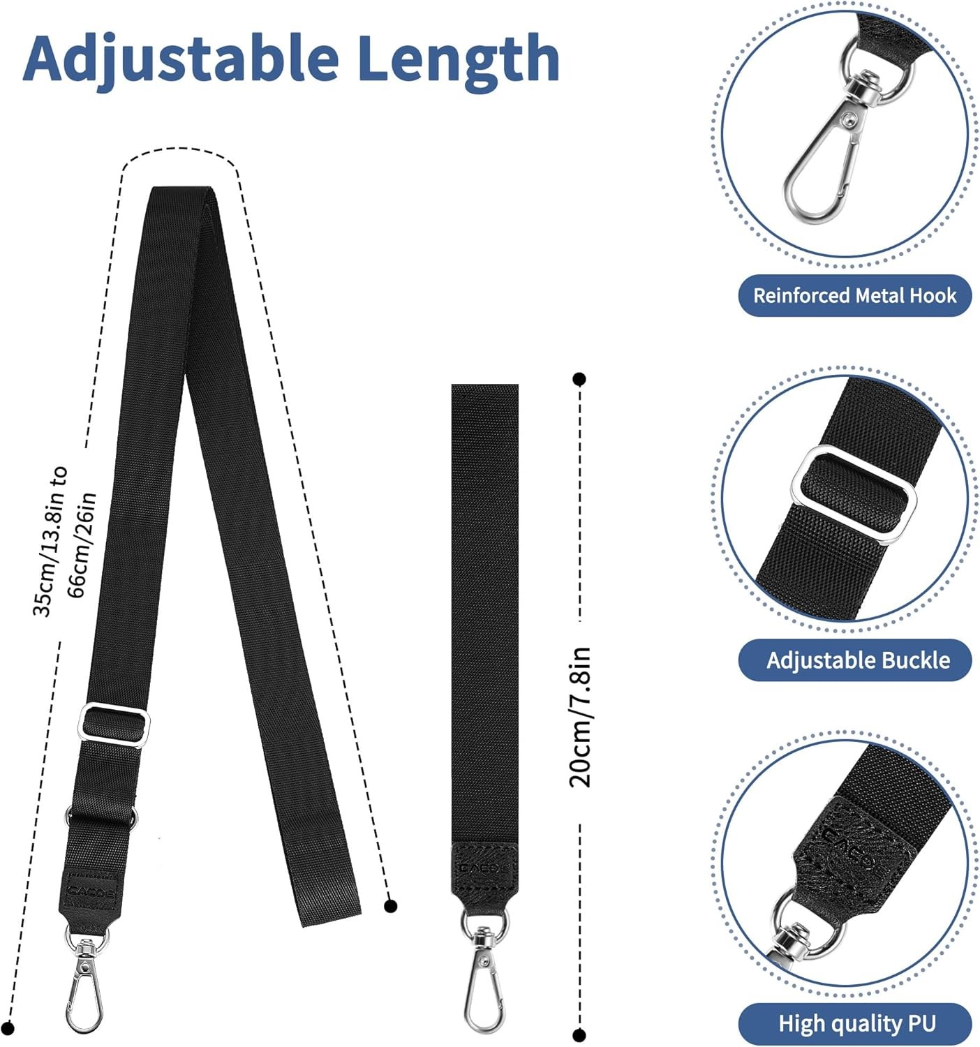 Phone Lanyard 2pcs Set, Adjustable Neck Wrist Strap with Pads, Universal Black