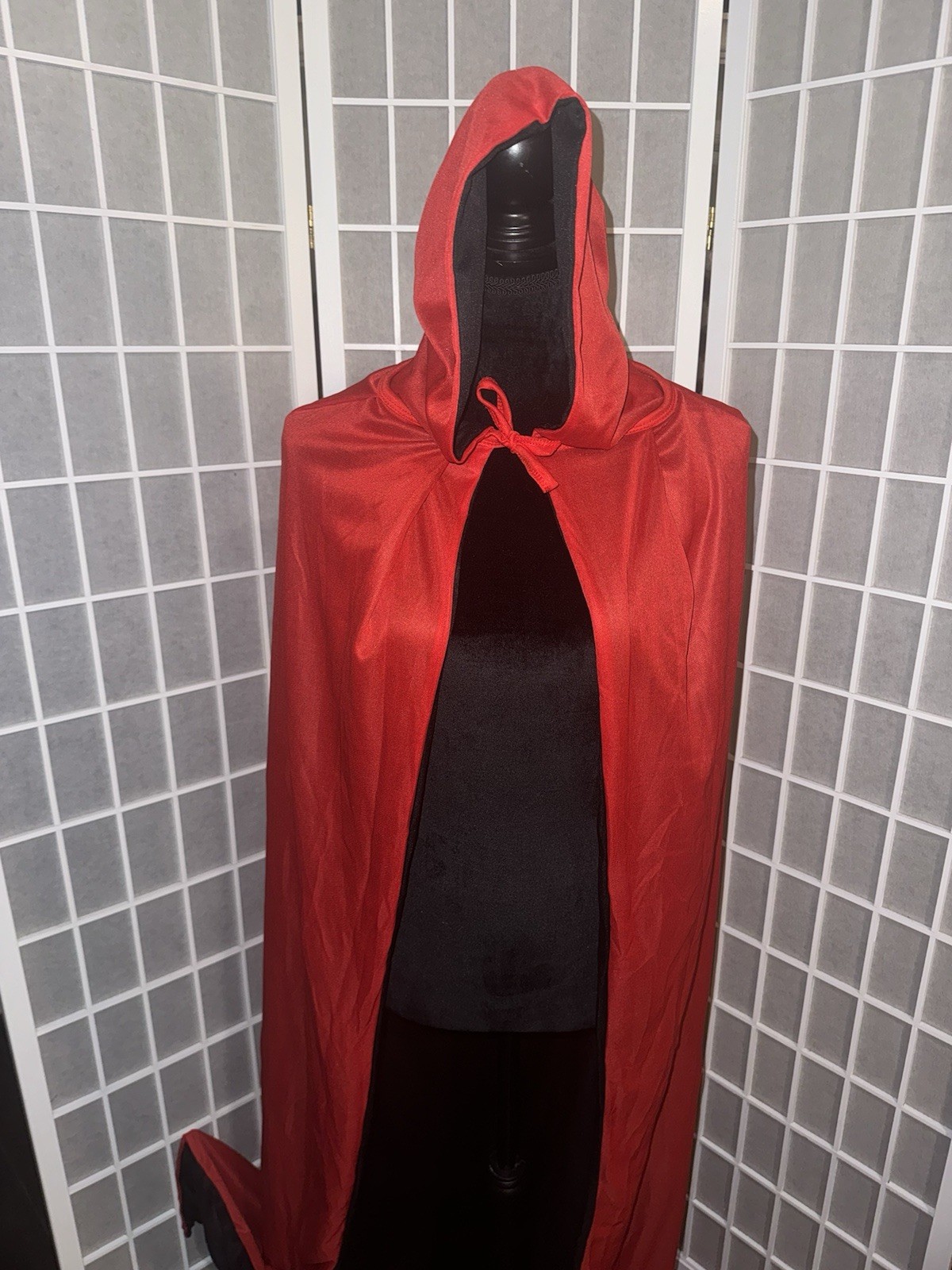 Halloween Reversible Black Red Cosplay Costume Hooded Masquerade Party Cape 63