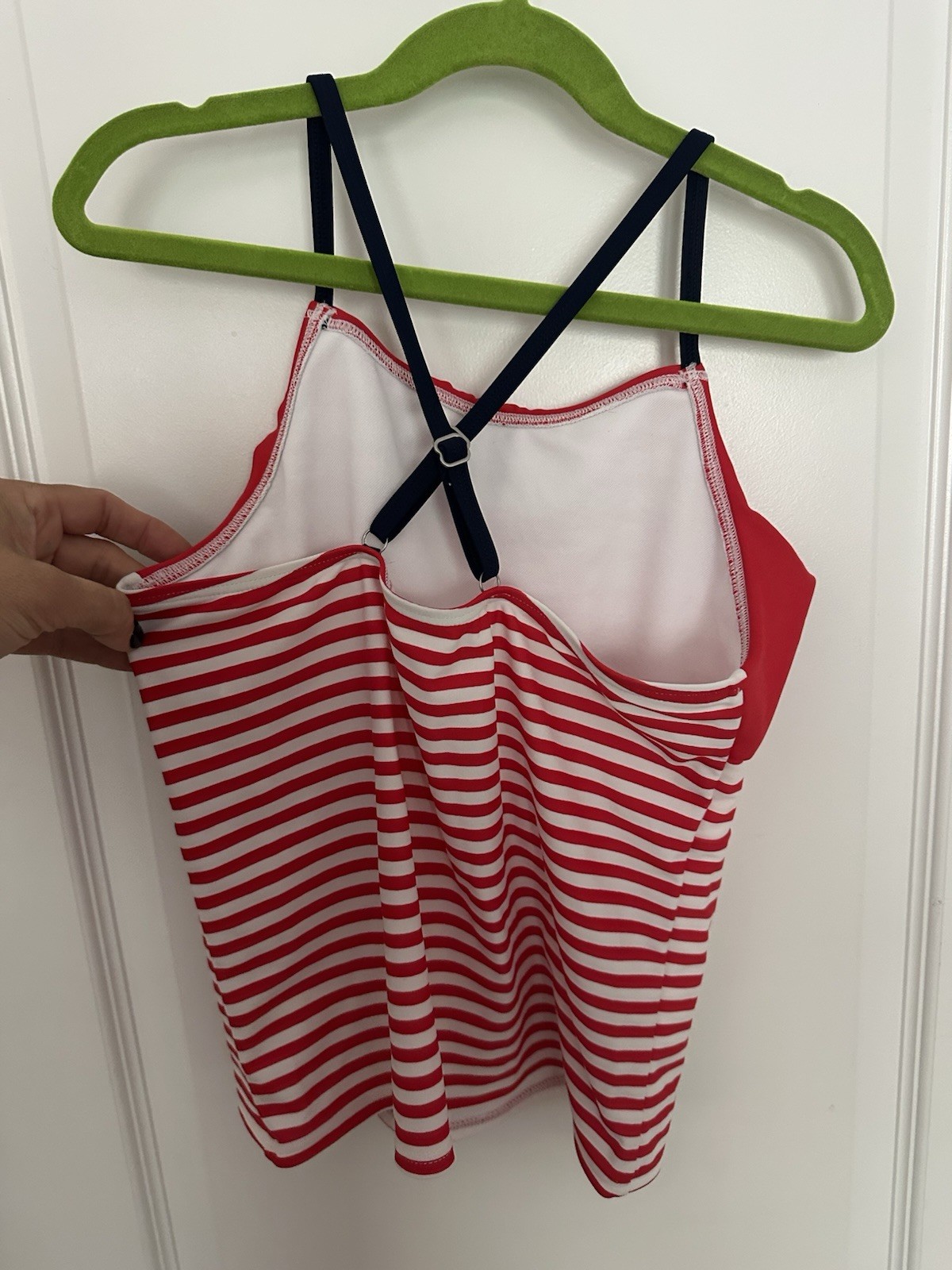 как выглядит Lands End Girls Tankini Top Red White Stripe Size 12 фото