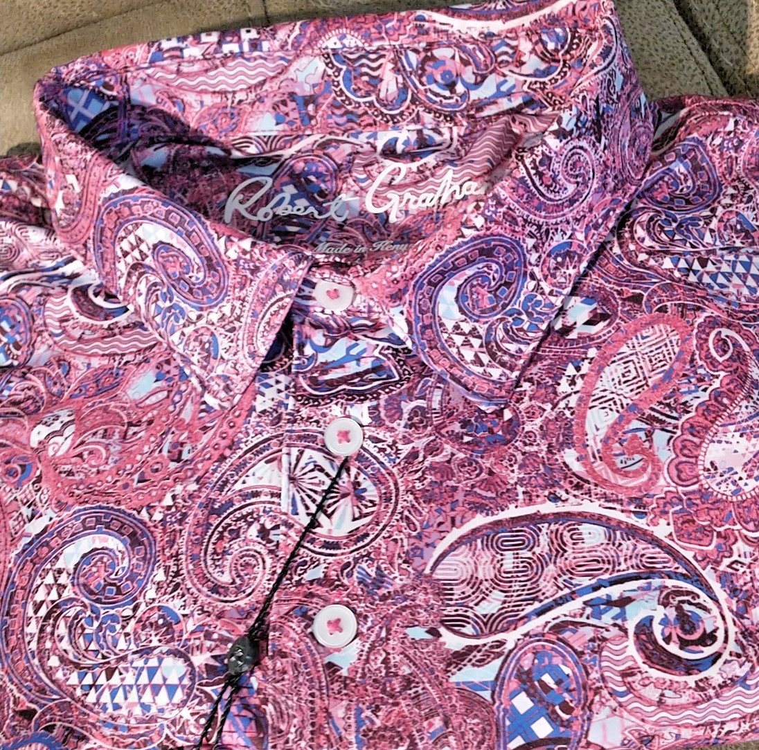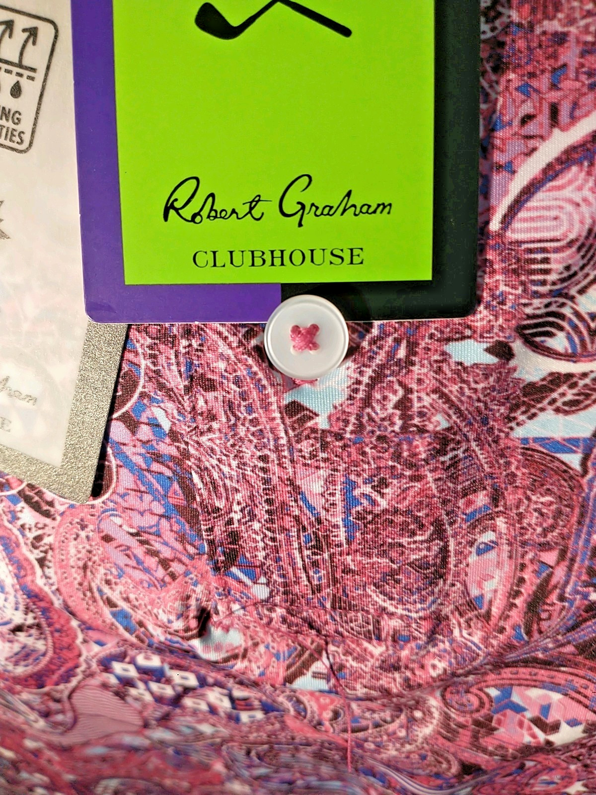 NWT Robert Graham men's Size M short sleeve Performance Clubhouse polo shirt Cl