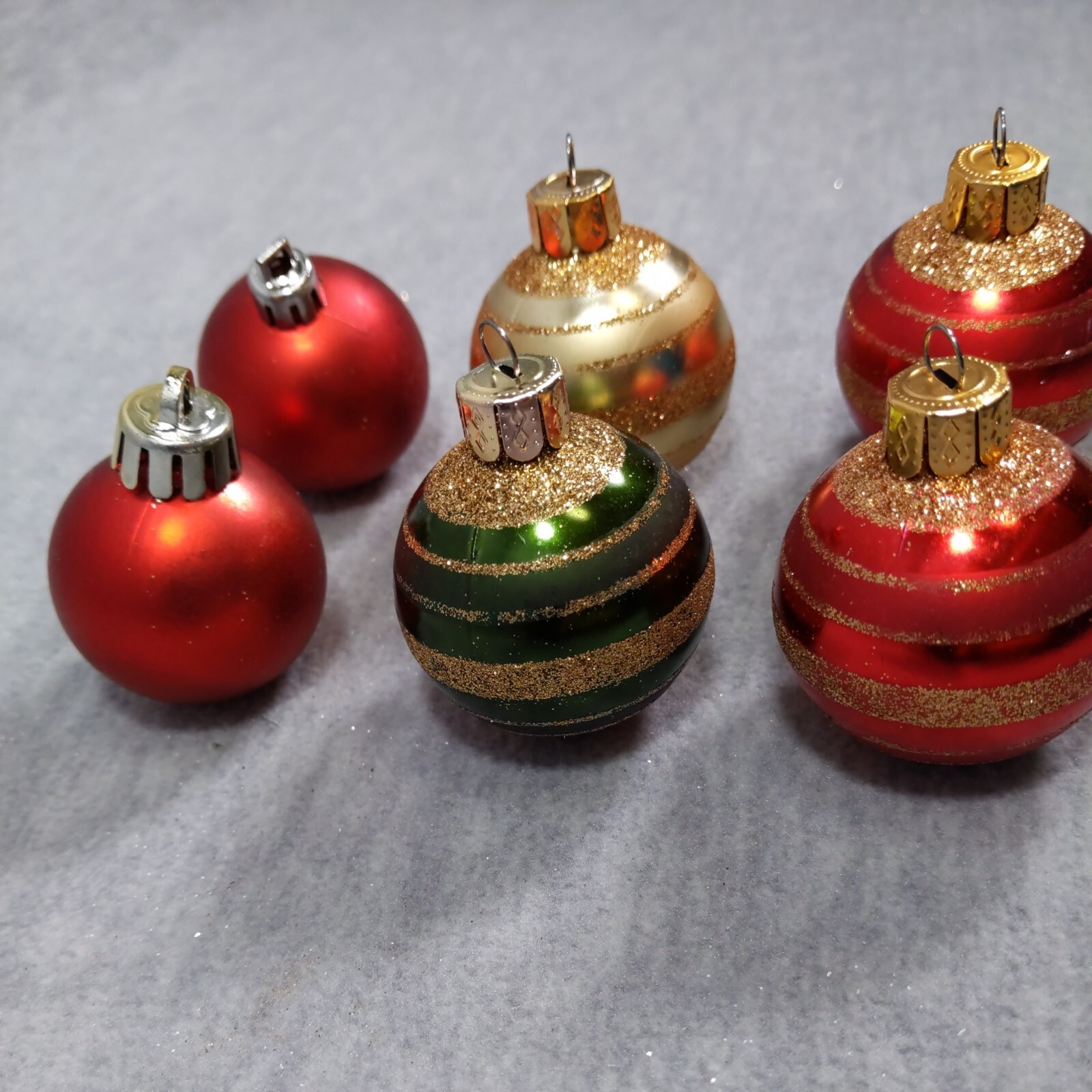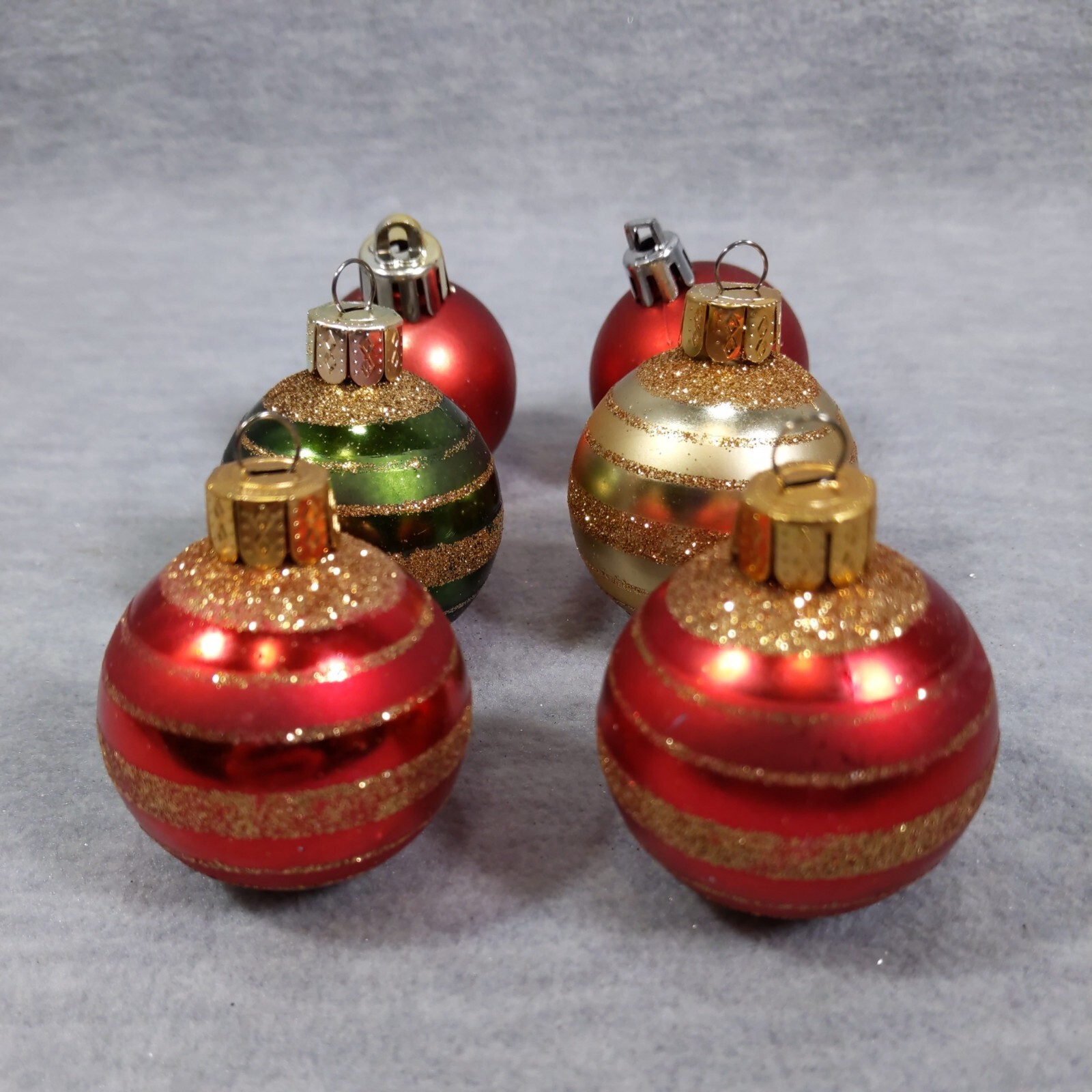 Set of 6 Christmas Glittered Ornaments Red Green Gold Ball 1.5 Xmas