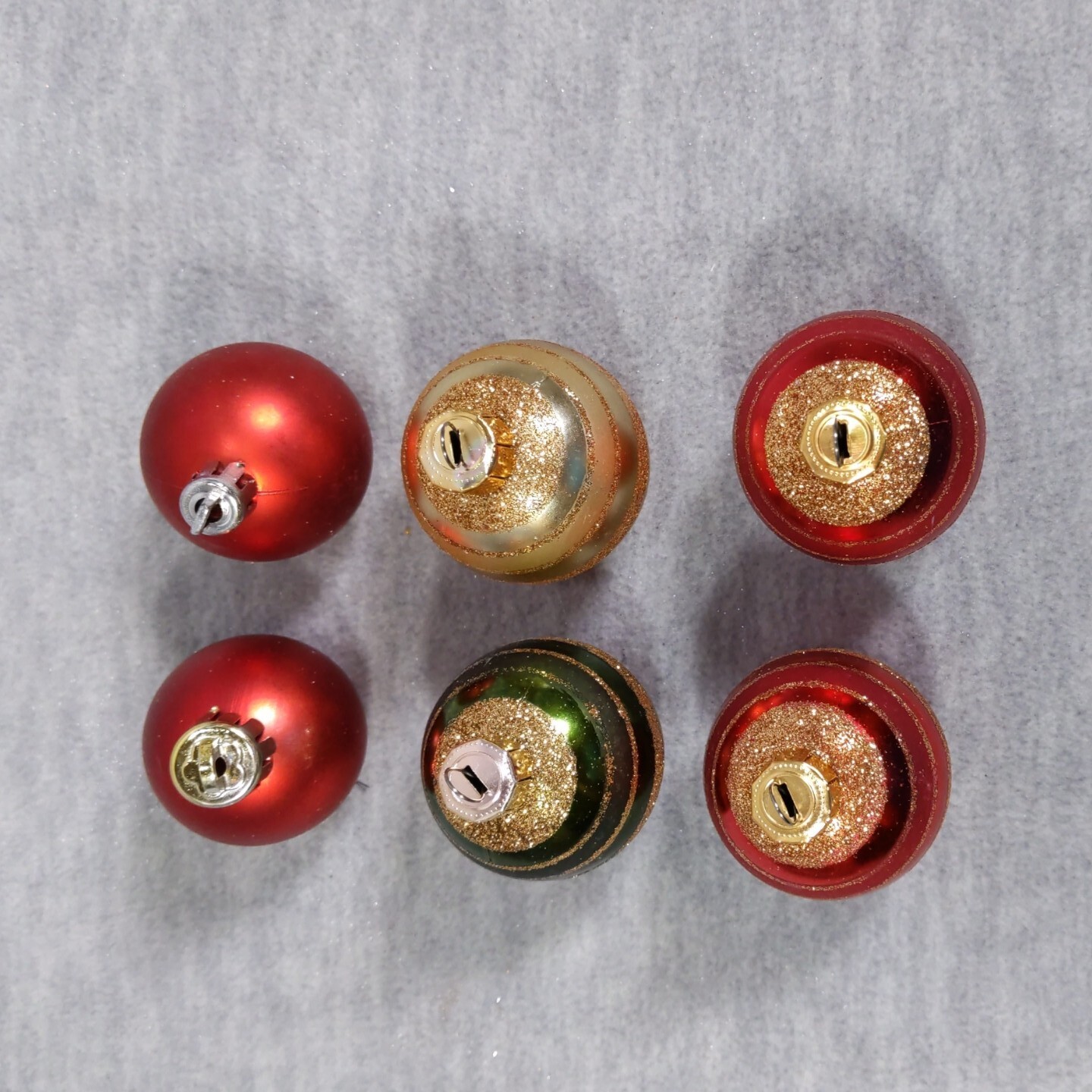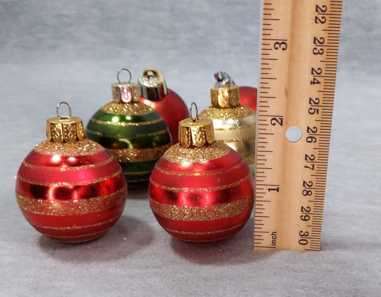как выглядит Set of 6 Christmas Glittered Ornaments Red Green Gold Ball 1.5" Xmas фото