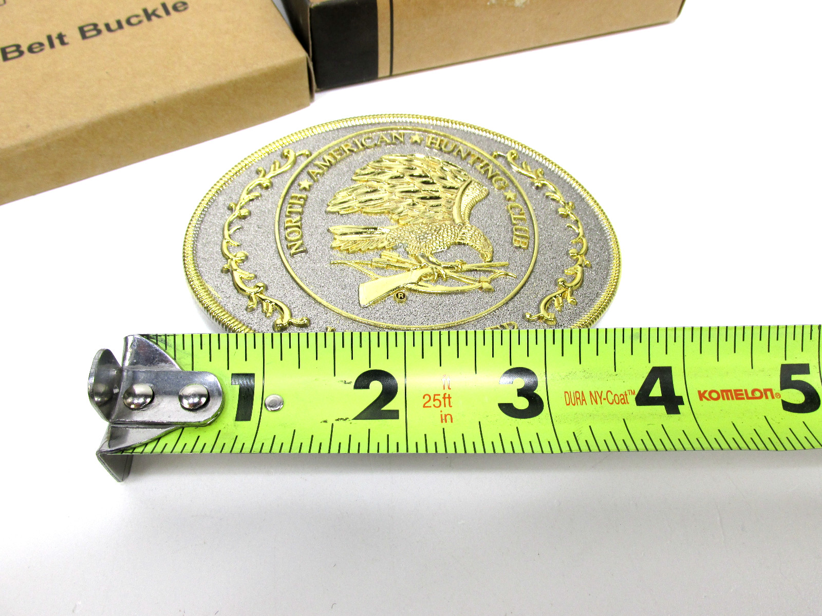 Vtg BELT BUCKLE Eagle Gun North American Hunting Club Life Member With Box
