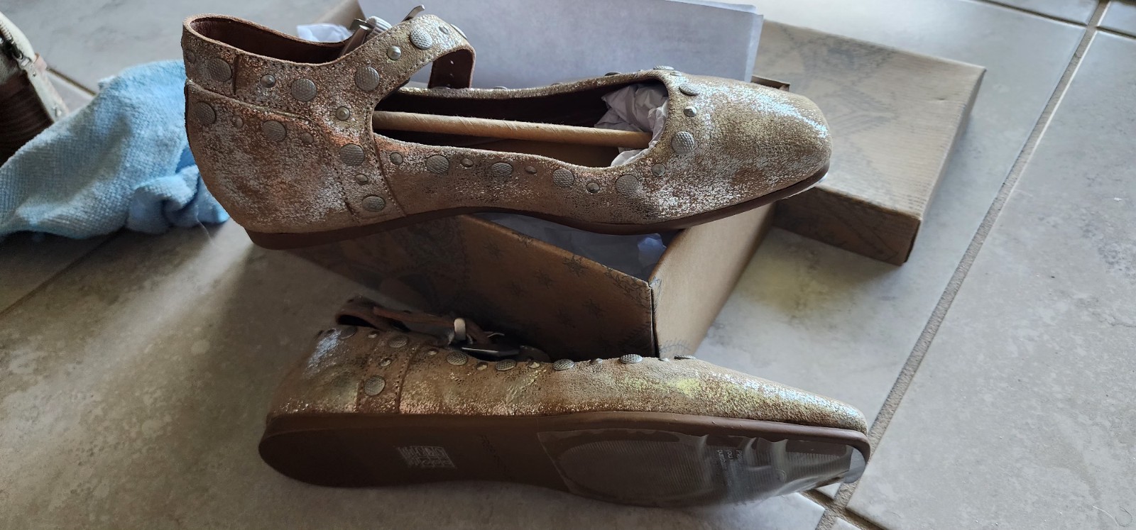 Free People Mystic Mary Jane Flats in Metallic Silver Distress Size 8.5