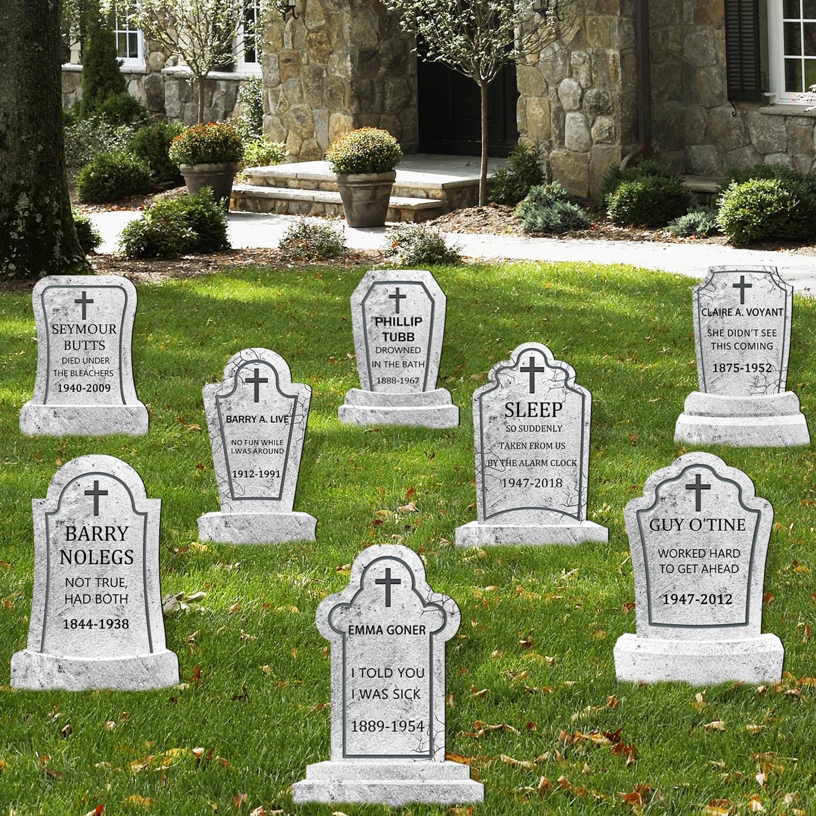 17 Inch Yard Sign Halloween Graveyard Decorations 8 Pcs Tombstones for Graves...