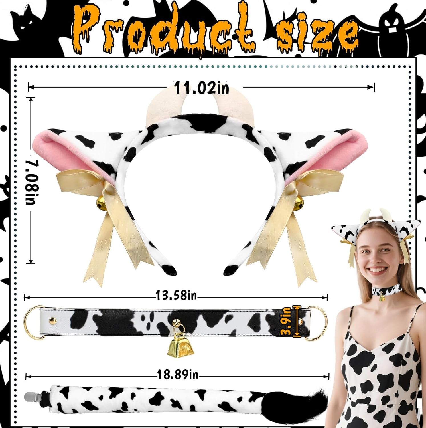 Cow Costume Accessories for Women - Cow Ears Headband, Tails Cowbell Necklace