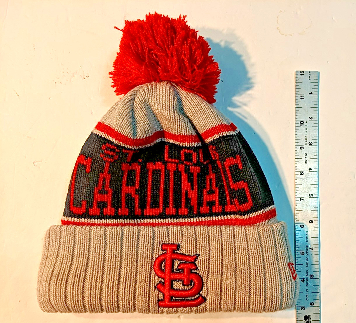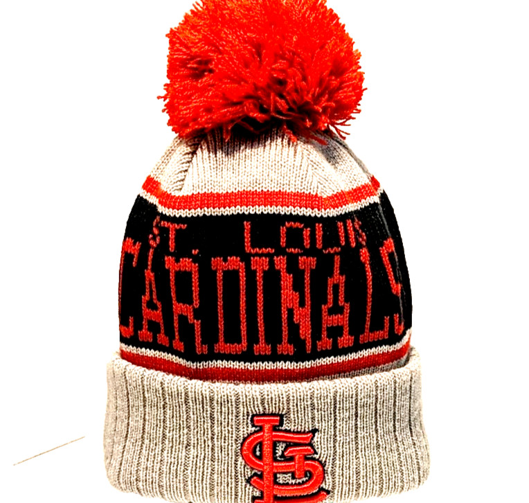 STL Cardinals Beanie Hat Youth New Era MLB Baseball Pom Winter Ski Cap Red Logo