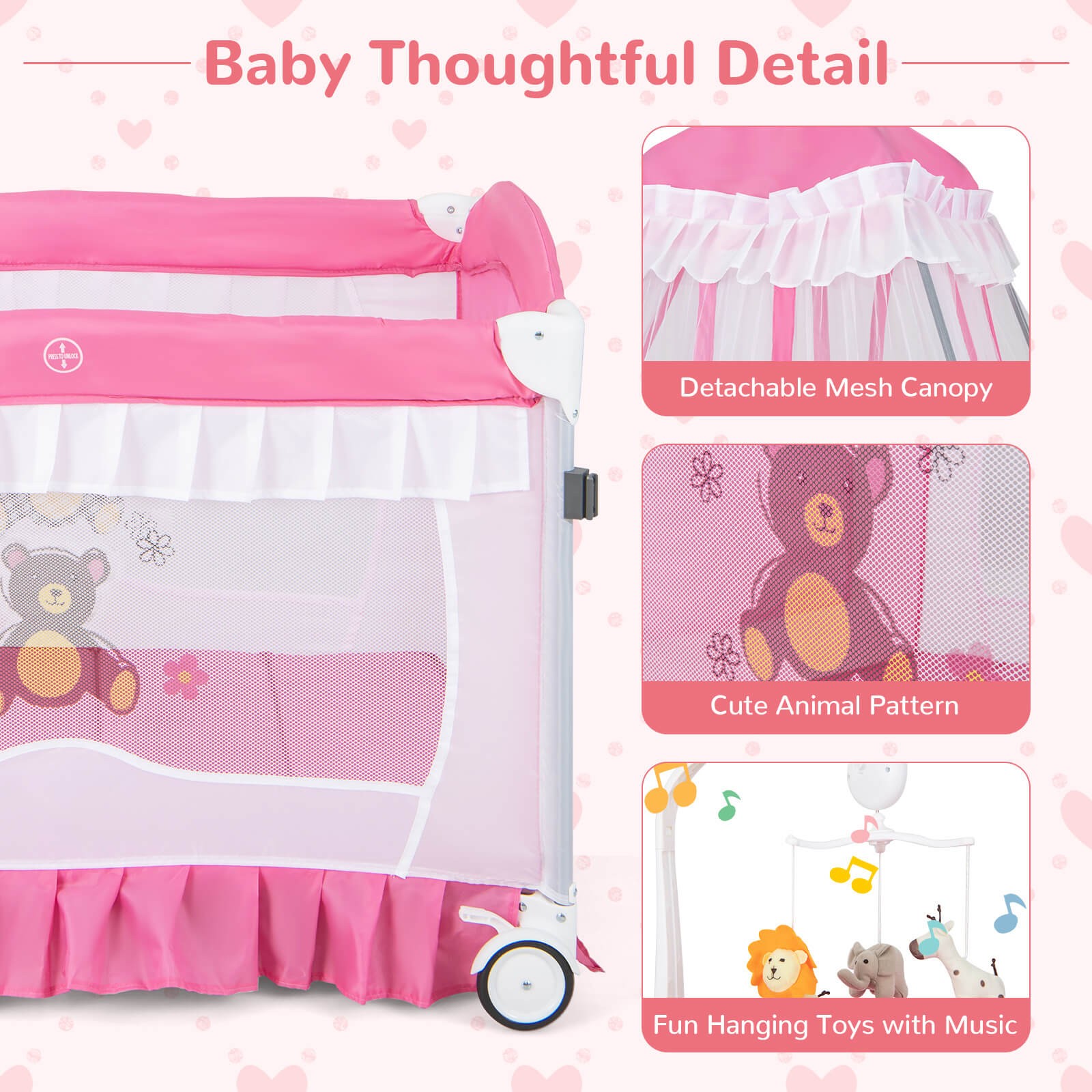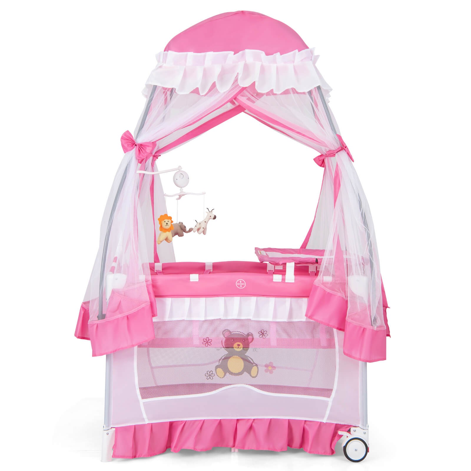 5-in-1 Portable Baby Playard Crib Infant Bassinet Bed w/ Table Canopy Music
