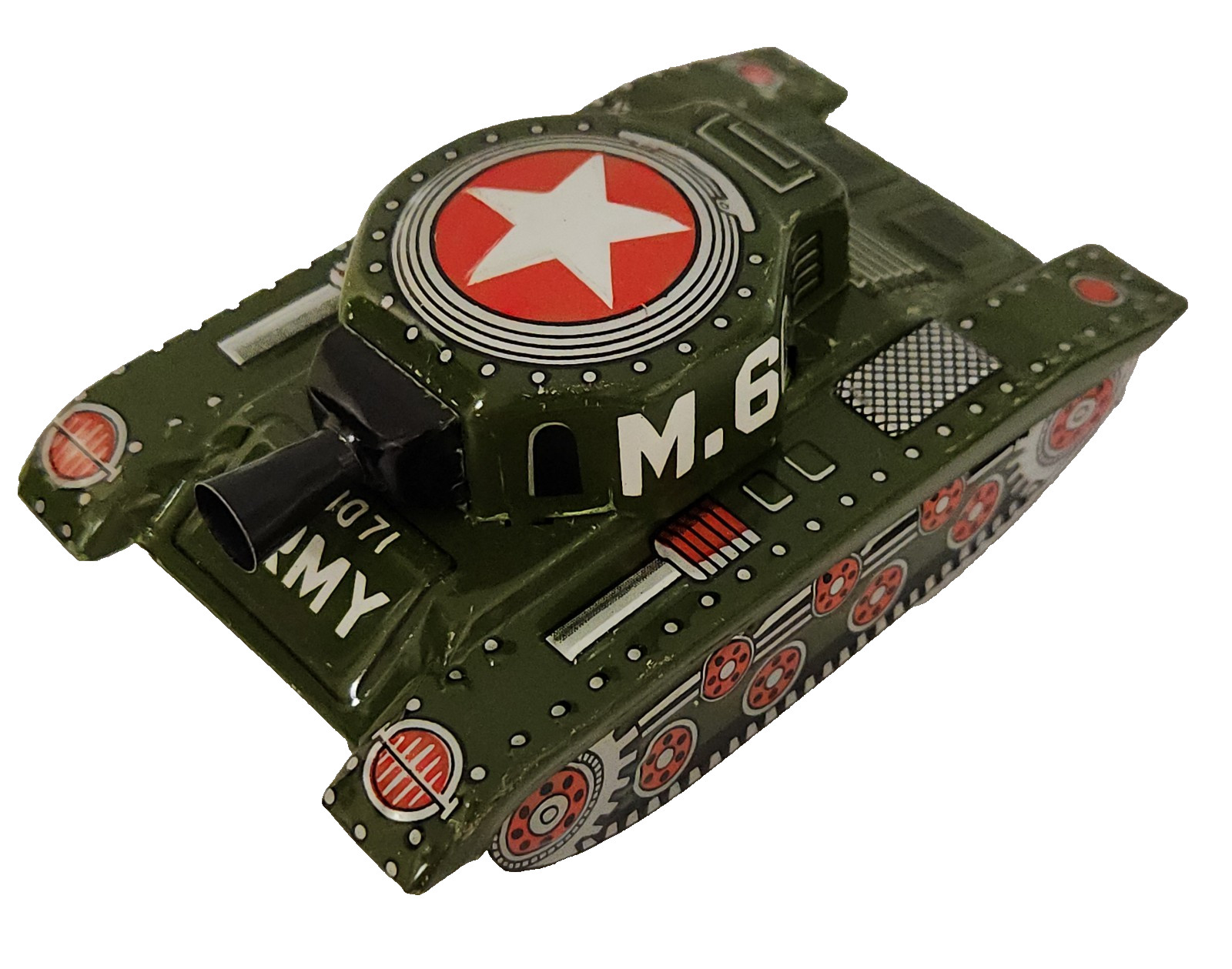 Vintage M.60 Army Tank 250071 Tin Litho Friction Toy Made in Japan 4.5