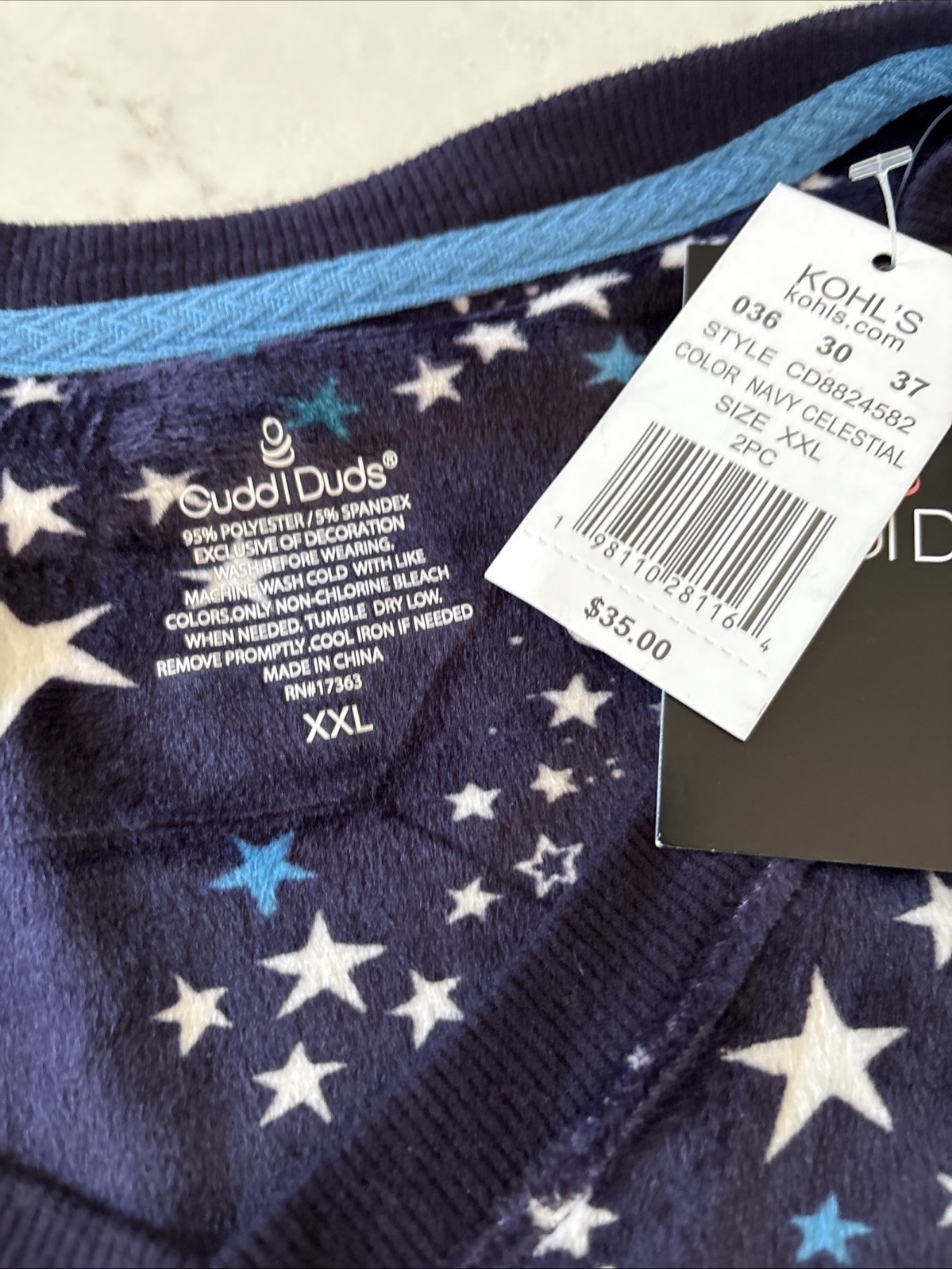 как выглядит Cuddl Duds Size XXL 2 PC. Pajama JOGGER SET BLUE CELESTIAL STARS SOFT FLEECE фото