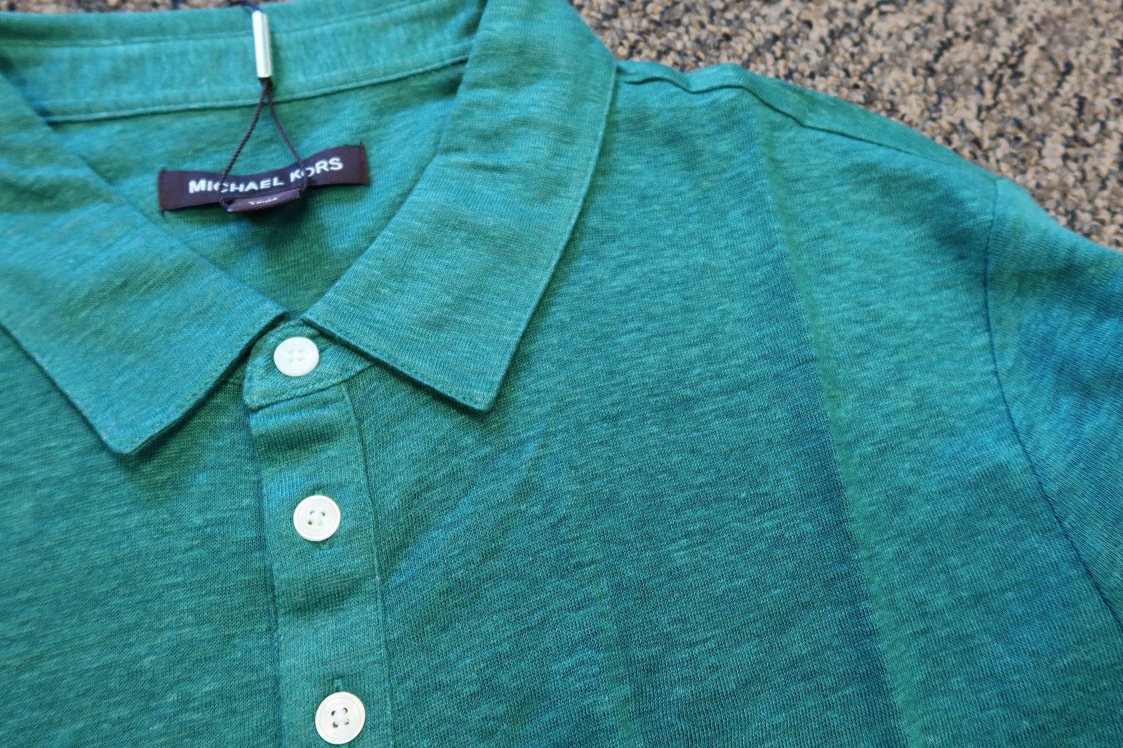 как выглядит New Michael Kors 100 Linen Mens Polo Shirt - Size XL - Amazon Green Heather фото