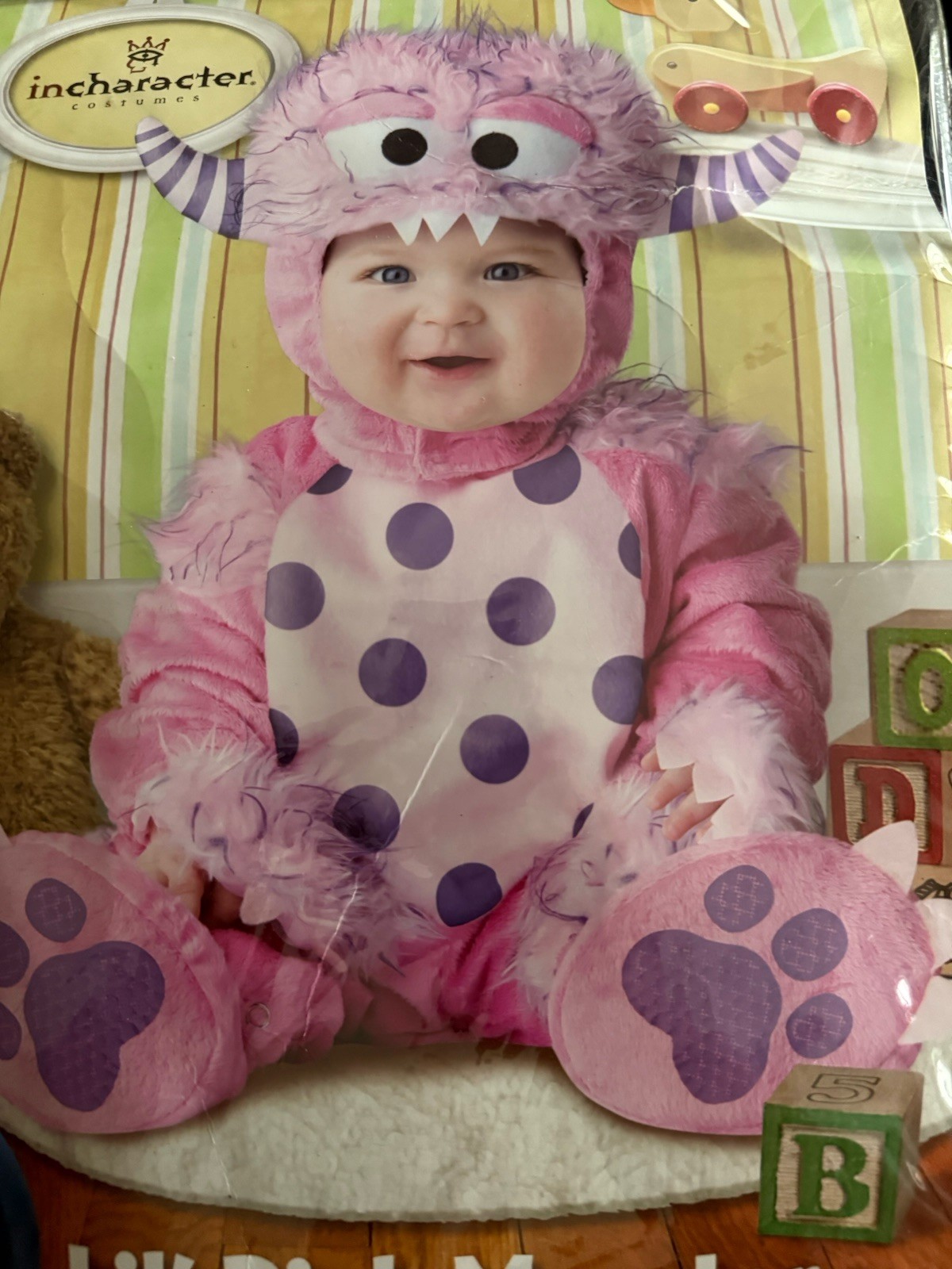 как выглядит Toddler Lil Pink Monster Costume 0-6 Month Halloween Jumpsuit W/ Hood Booties фото