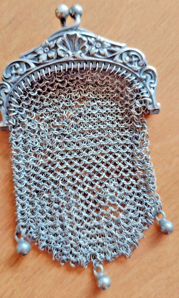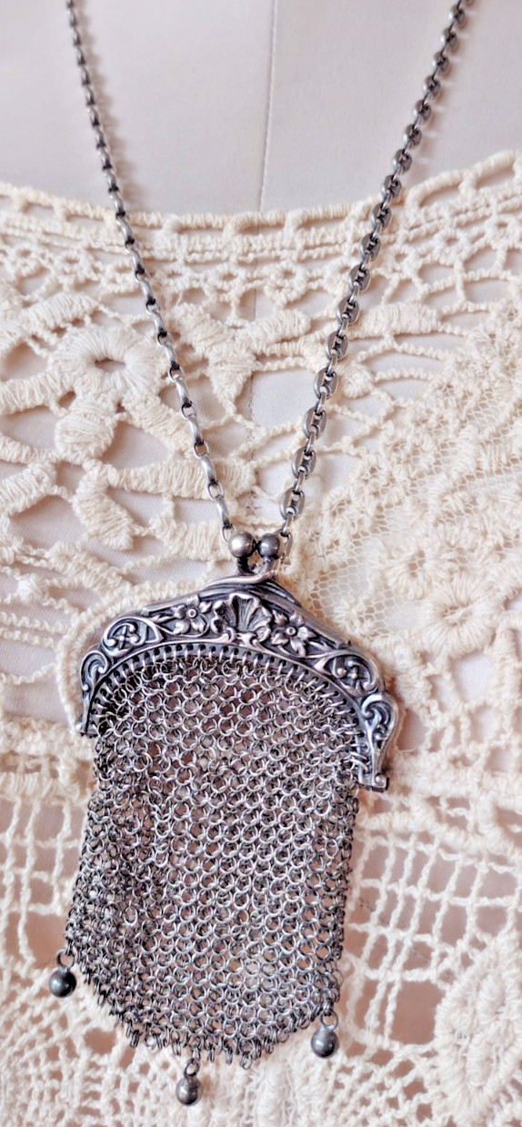 • Mini Antique Victorian Art Nouveau Floral Sterling Silver Chatelaine Coin Purse