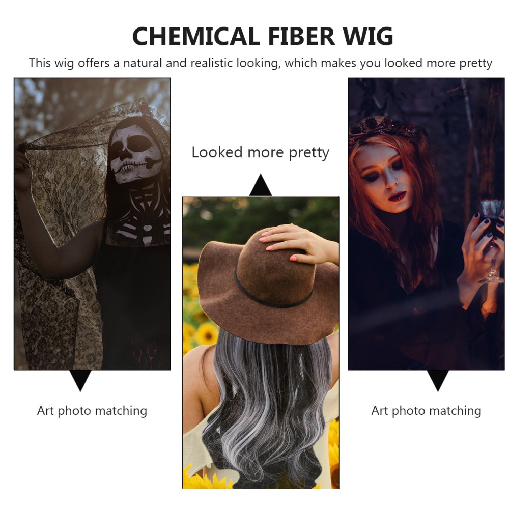 Halloween Curly Black White Wig Long Hair Cosplay Party