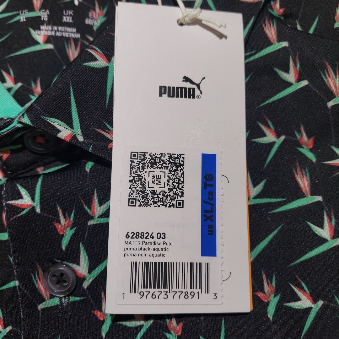 Puma Man's Size XL - MATTR Paradise Golf Polo Color Puma Black/Aquatic MSRP 75