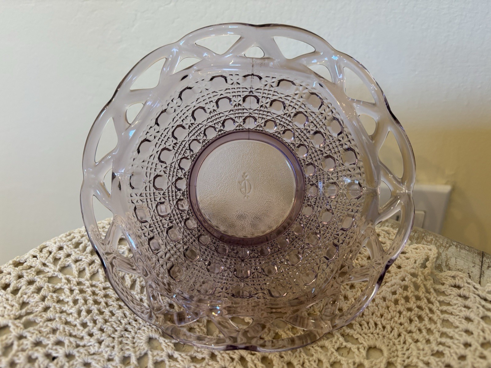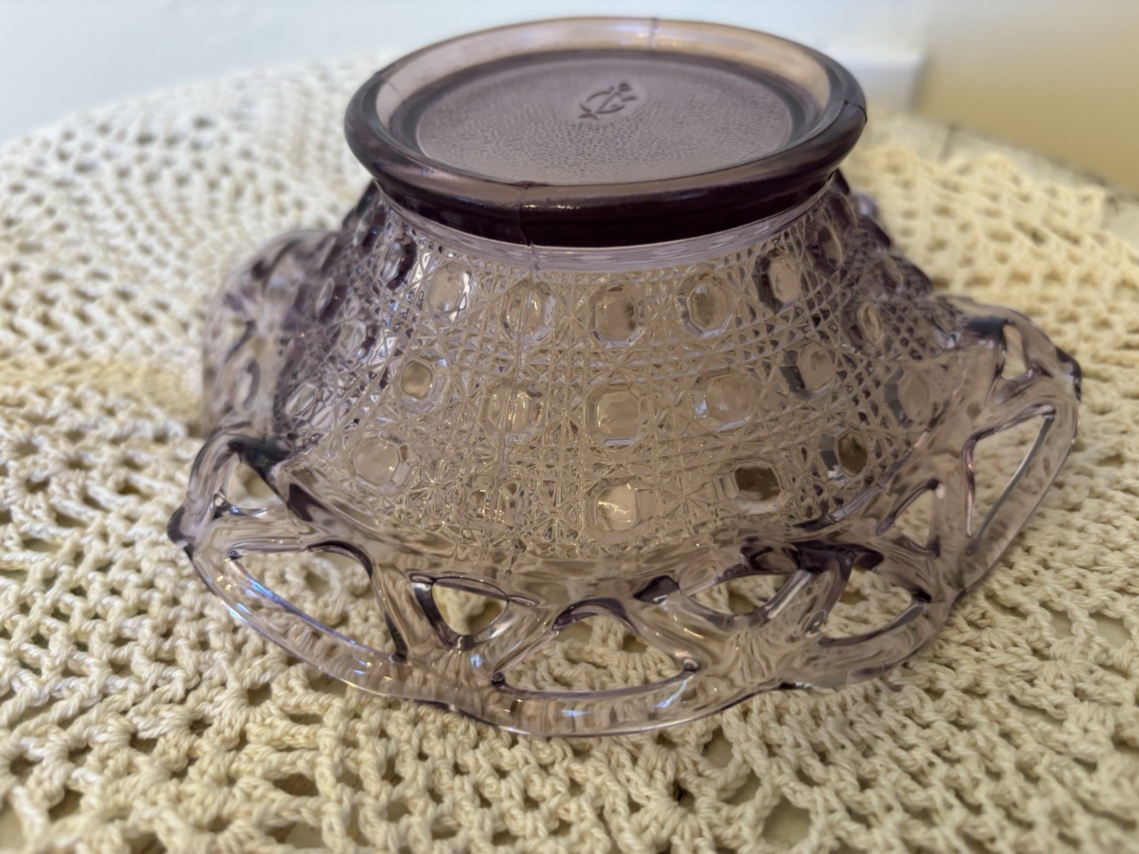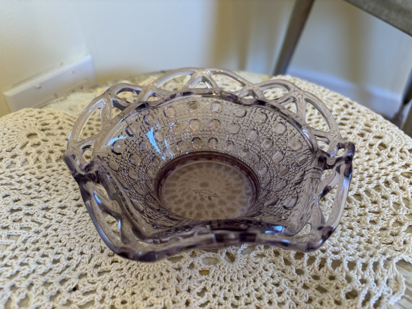 Vintage Imperial Glass Purple Candy Dish, Open Lace Scalloped Wavy Edge