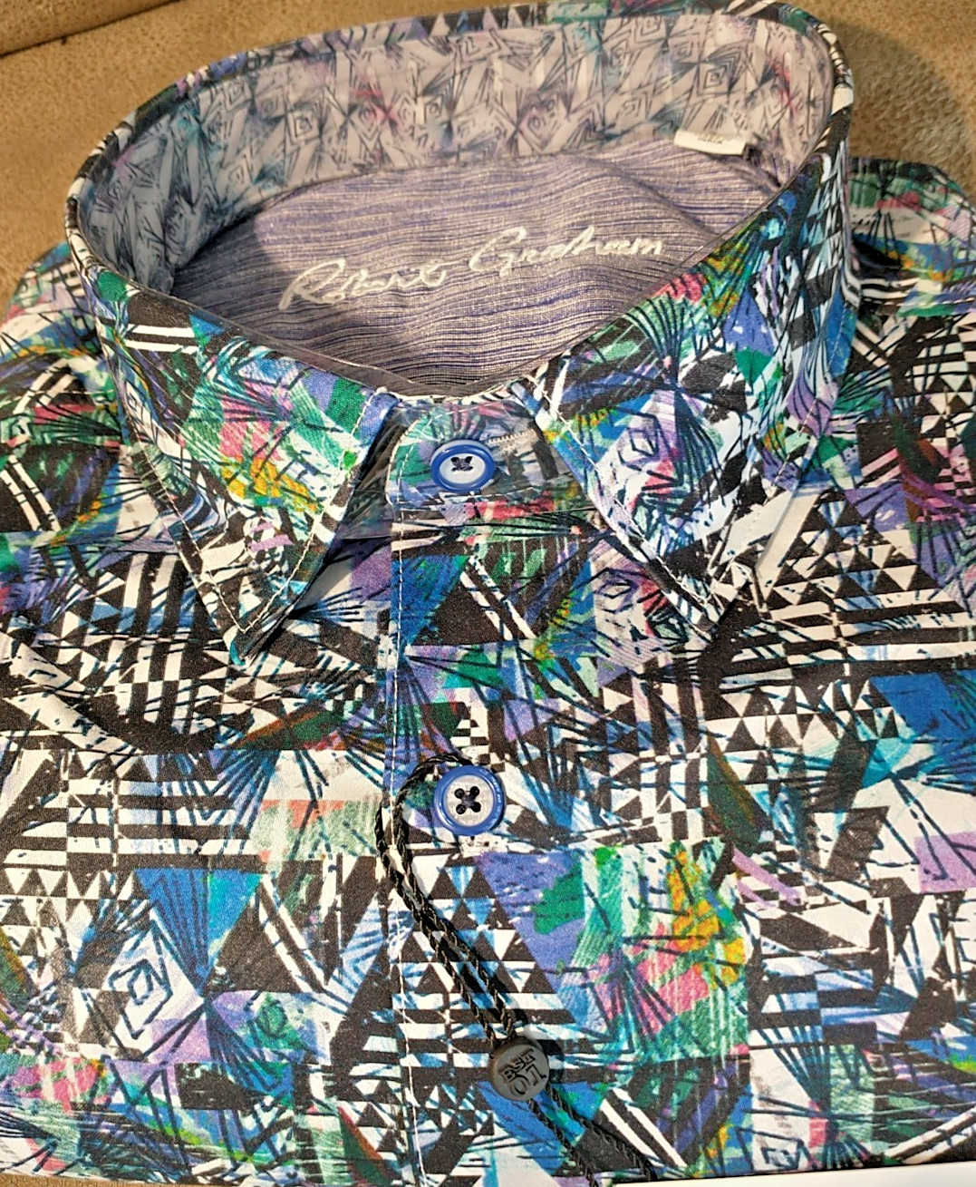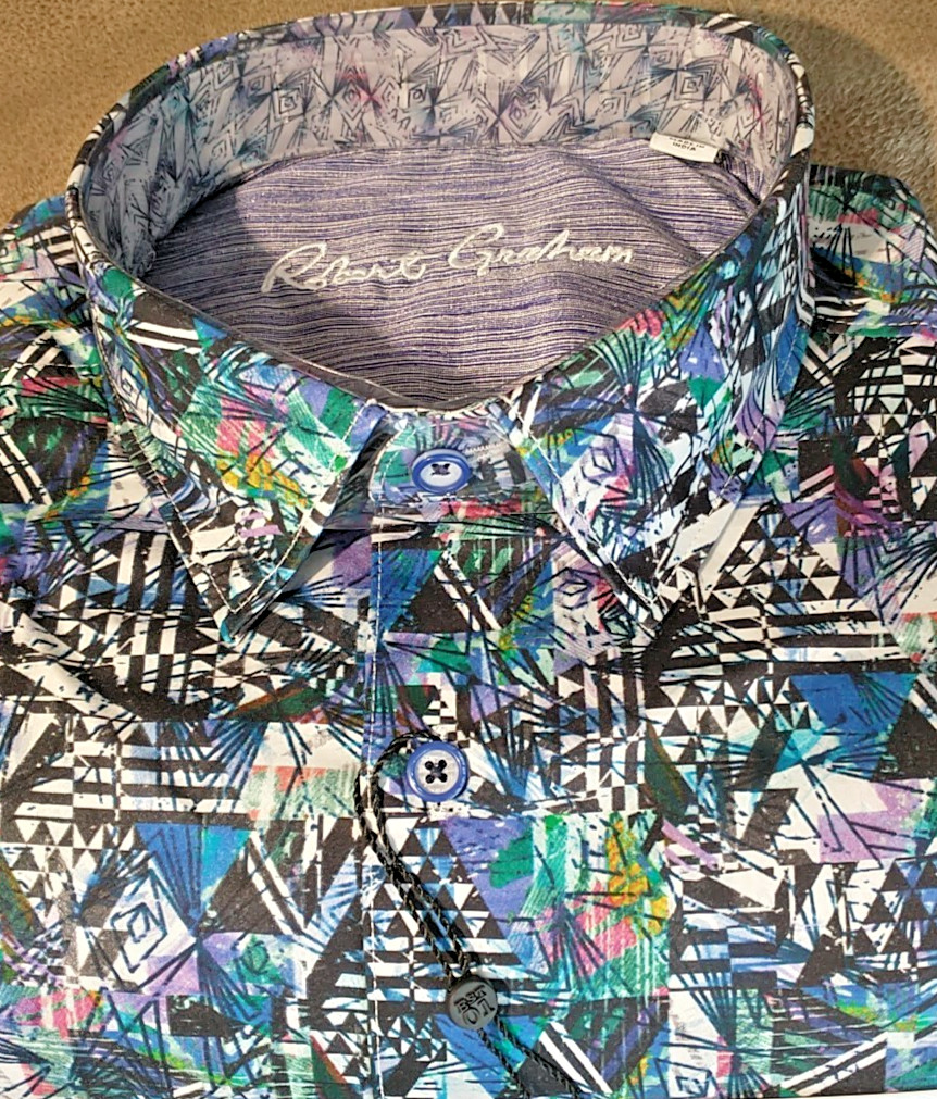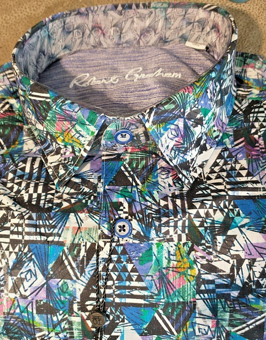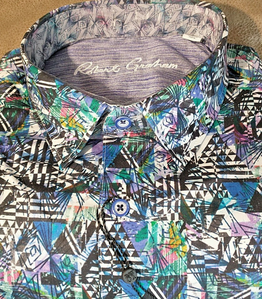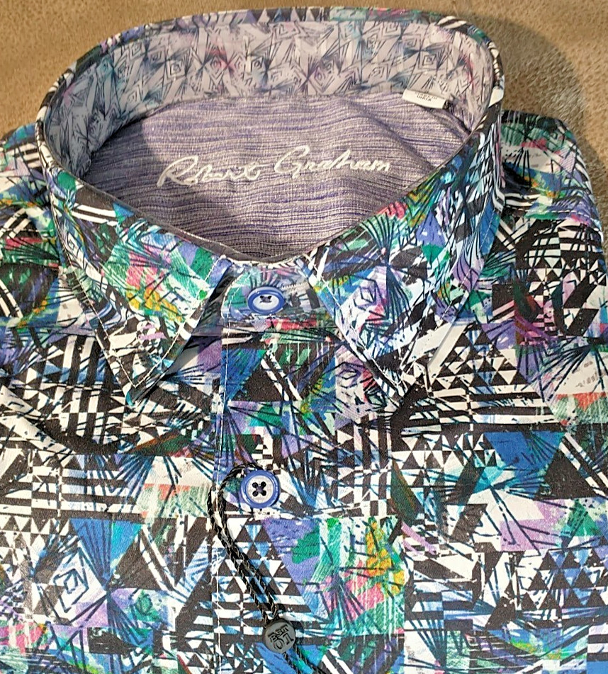 как выглядит NWT Robert Graham size L Long sleeve button down shirt Abstract Arts Classic Fit фото