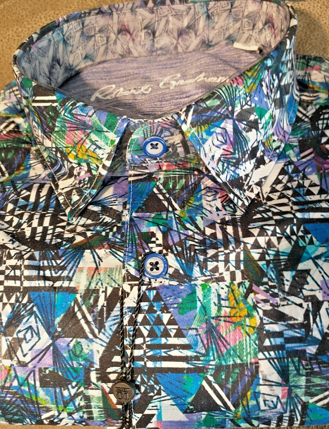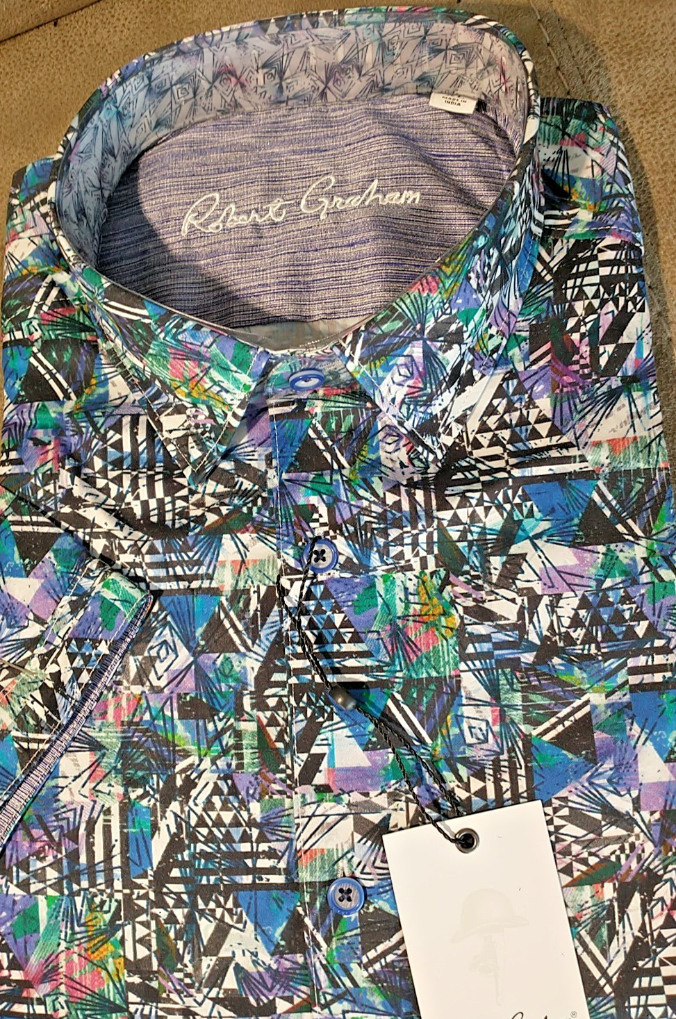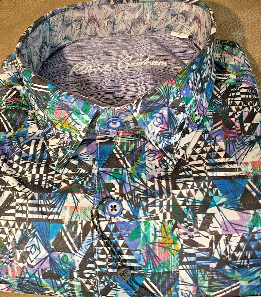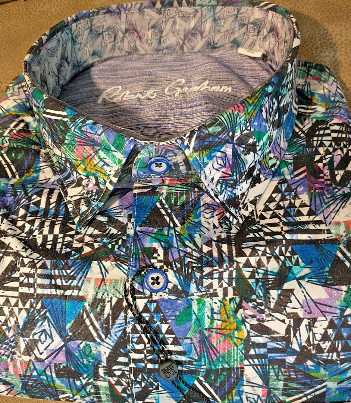 как выглядит NWT Robert Graham size L Long sleeve button down shirt Abstract Arts Classic Fit фото