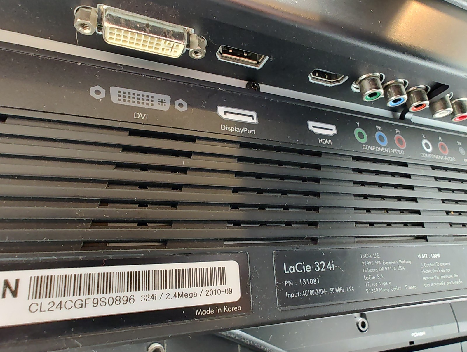 GOOD Lacie 324i Widescreen 24 Wide Gamut Display Computer Monitor w/stand,wires