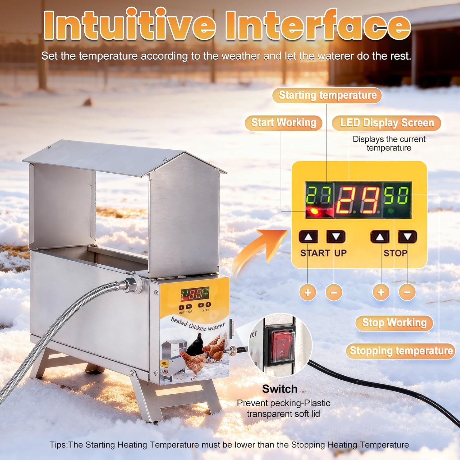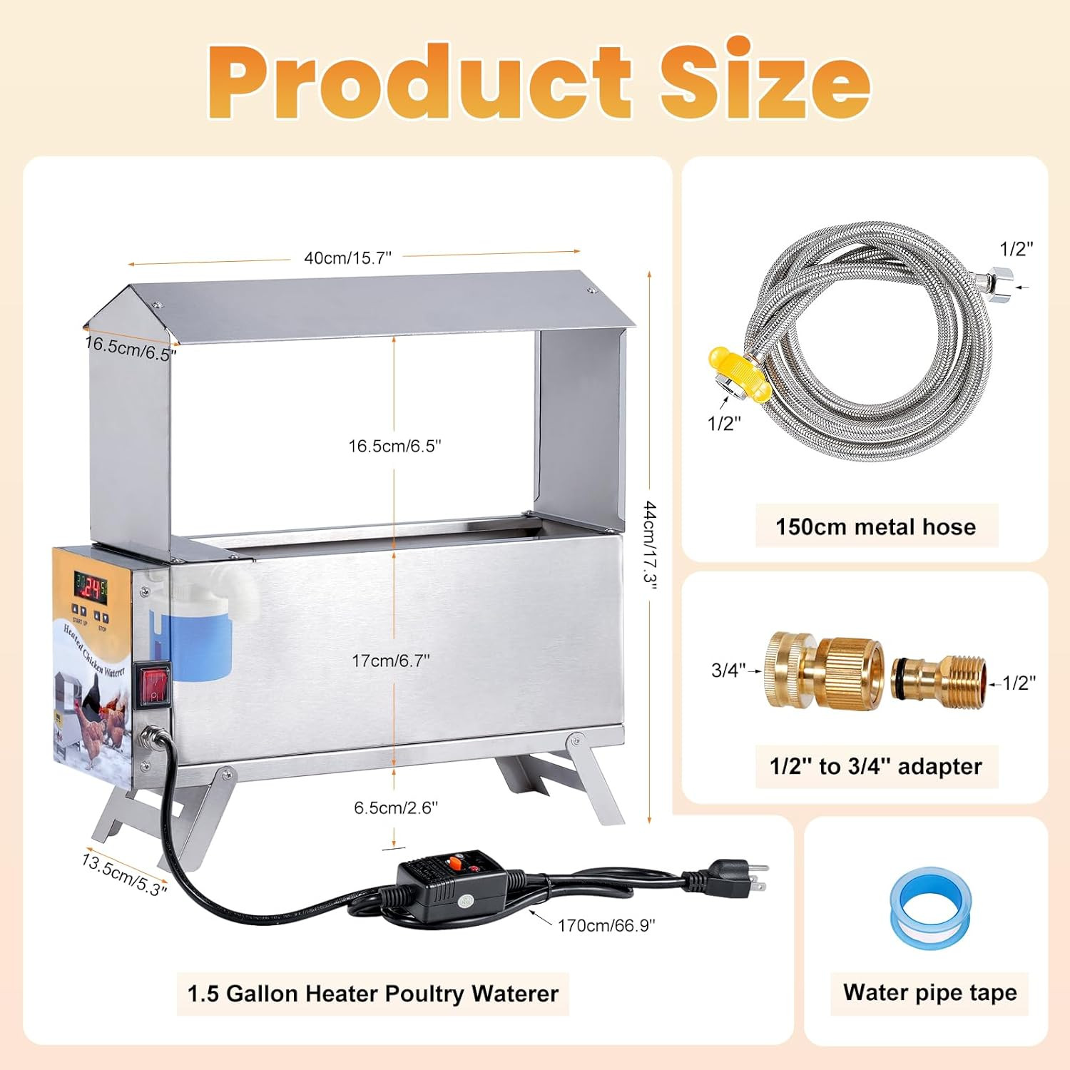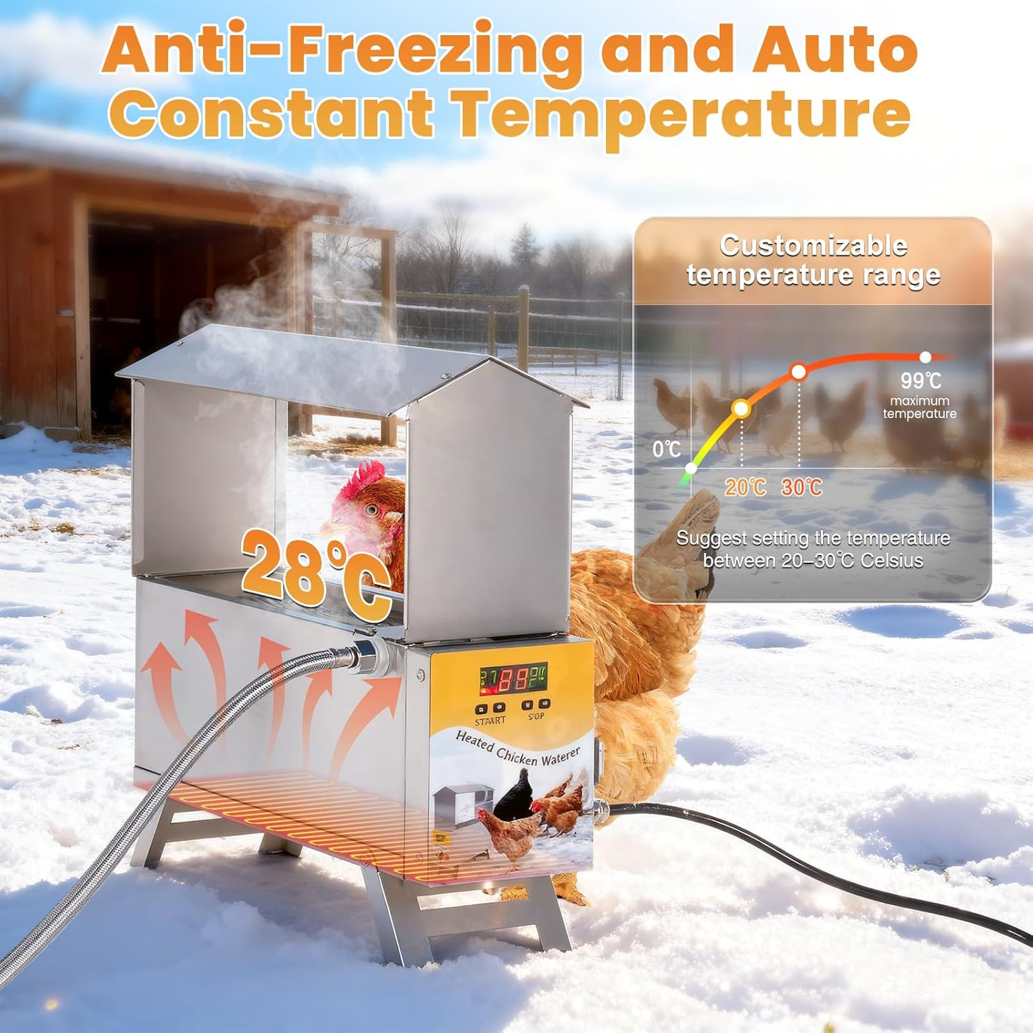 Heated Chicken Waterer 1.5 Gallon with Stand,Stainless Steel Automatic Poultry W