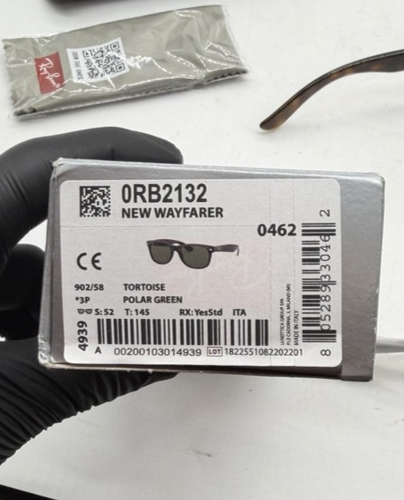как выглядит Ray-Ban RB2132 New Wayfarer Sunglasses 52mm Tortoise/Polarized Green фото