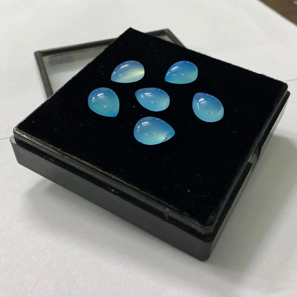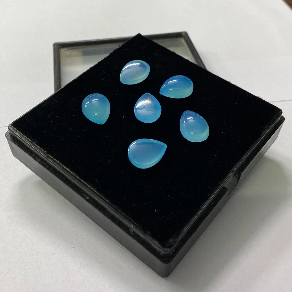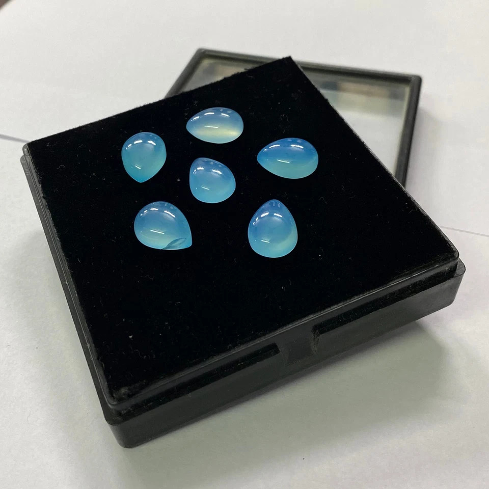 как выглядит AAA Natural Aqua Chalcedony Cabochon Pear Shape Loose Gemstone фото