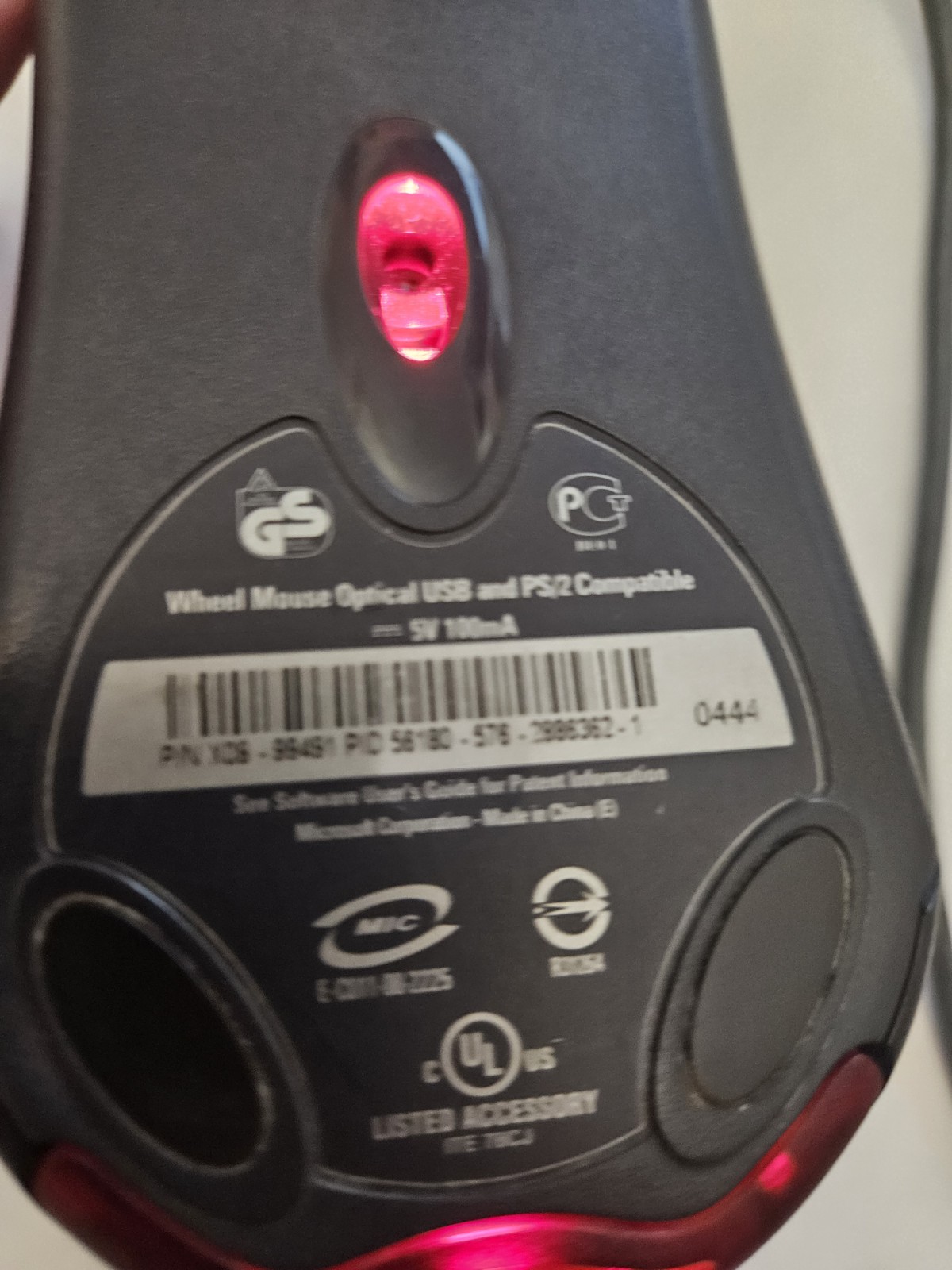 Microsoft Wheel Mouse Optical USB X802382 1.1A Black Tested