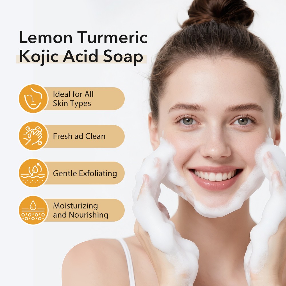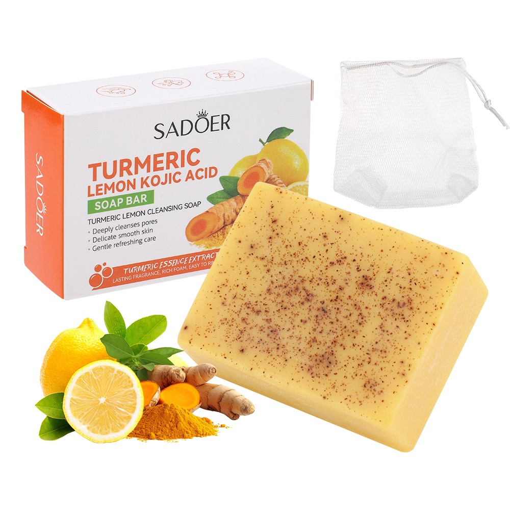 100g Lemon Turmeric Kojic Acid Soap Bar, Turmeric Face and Body Soap Deep Clean