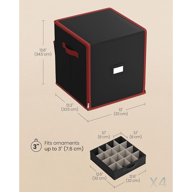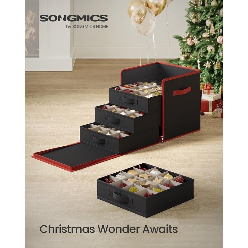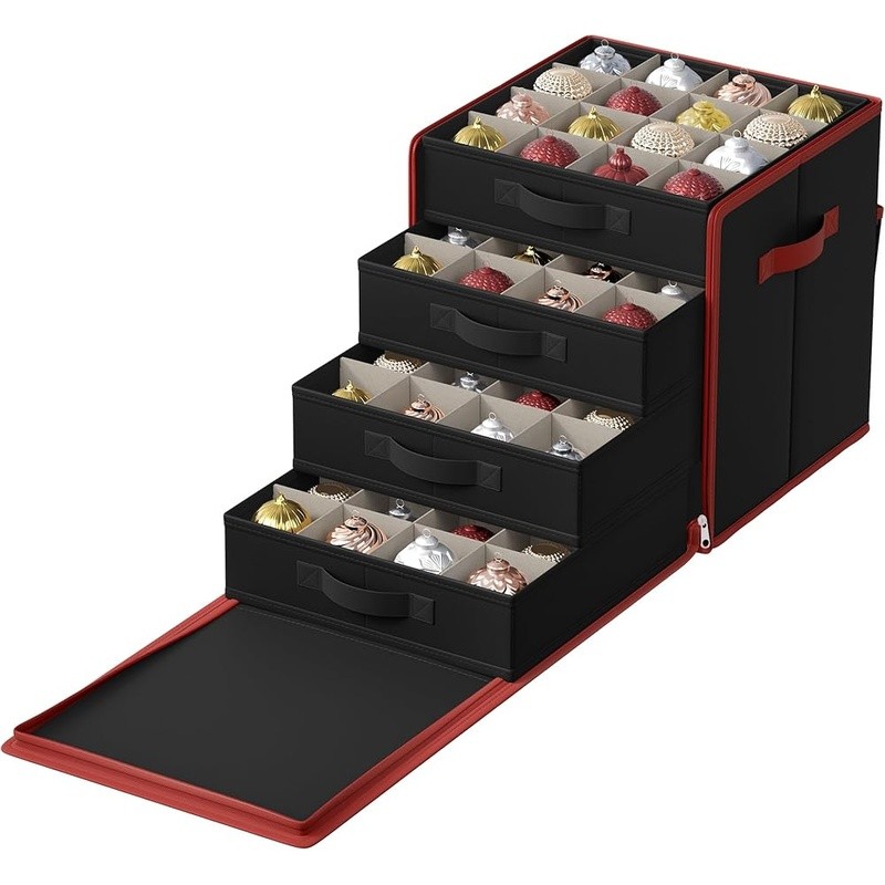 Stackable Christmas Ornament Storage Box W/ 4 Drawer Trays Side Open 64 Slots US