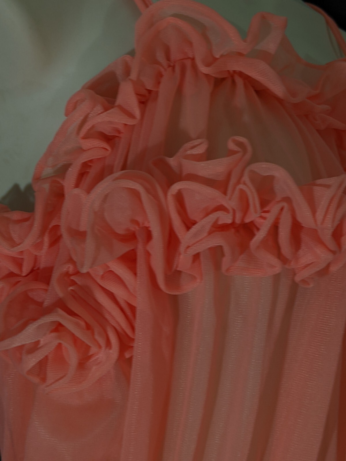 Vintage Fancy Ruffled Nylon Chiflfon Peach Lingerie Nightgown M