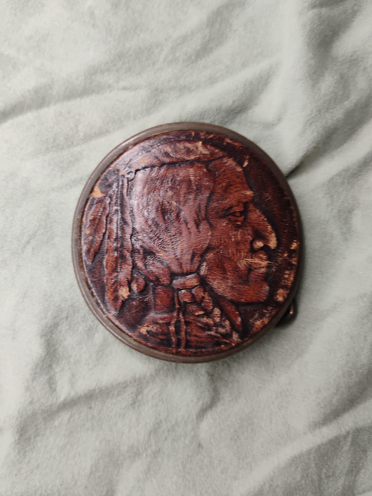 Vintage Buffalo Indian Head Pressed Leather Belt Buckle
