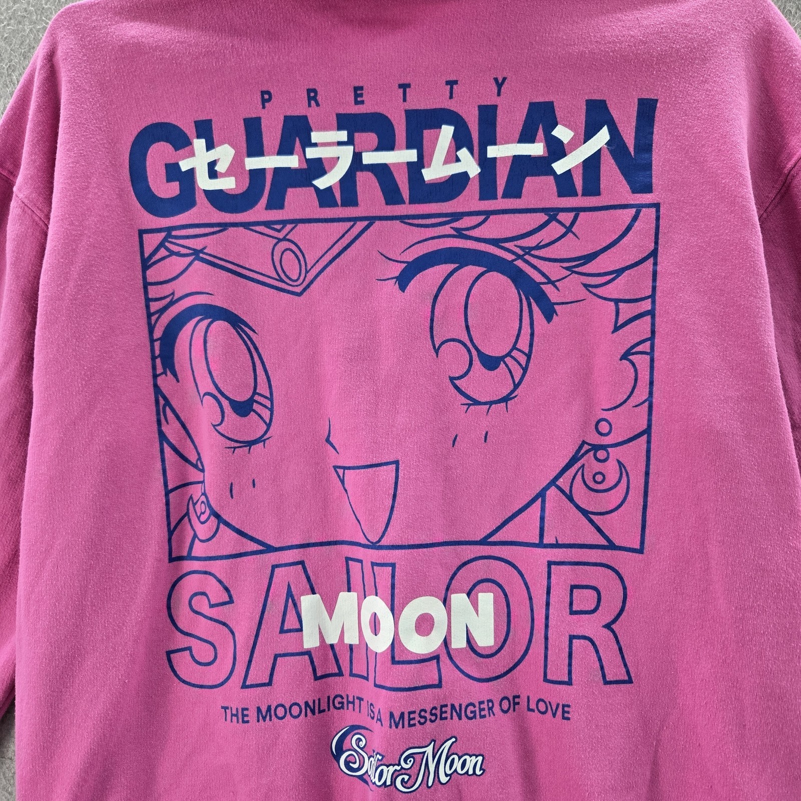 Sailor Moon Hoodie L Pink Graphic Print Anime Logo Long Sleeve READ