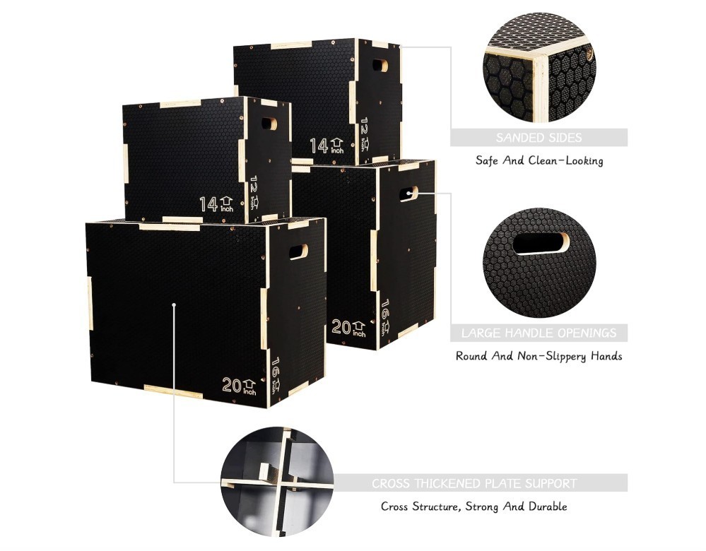 3 in 1 Non-Slip Wooden Plyo Box Plyometric Box Jumping Exercise