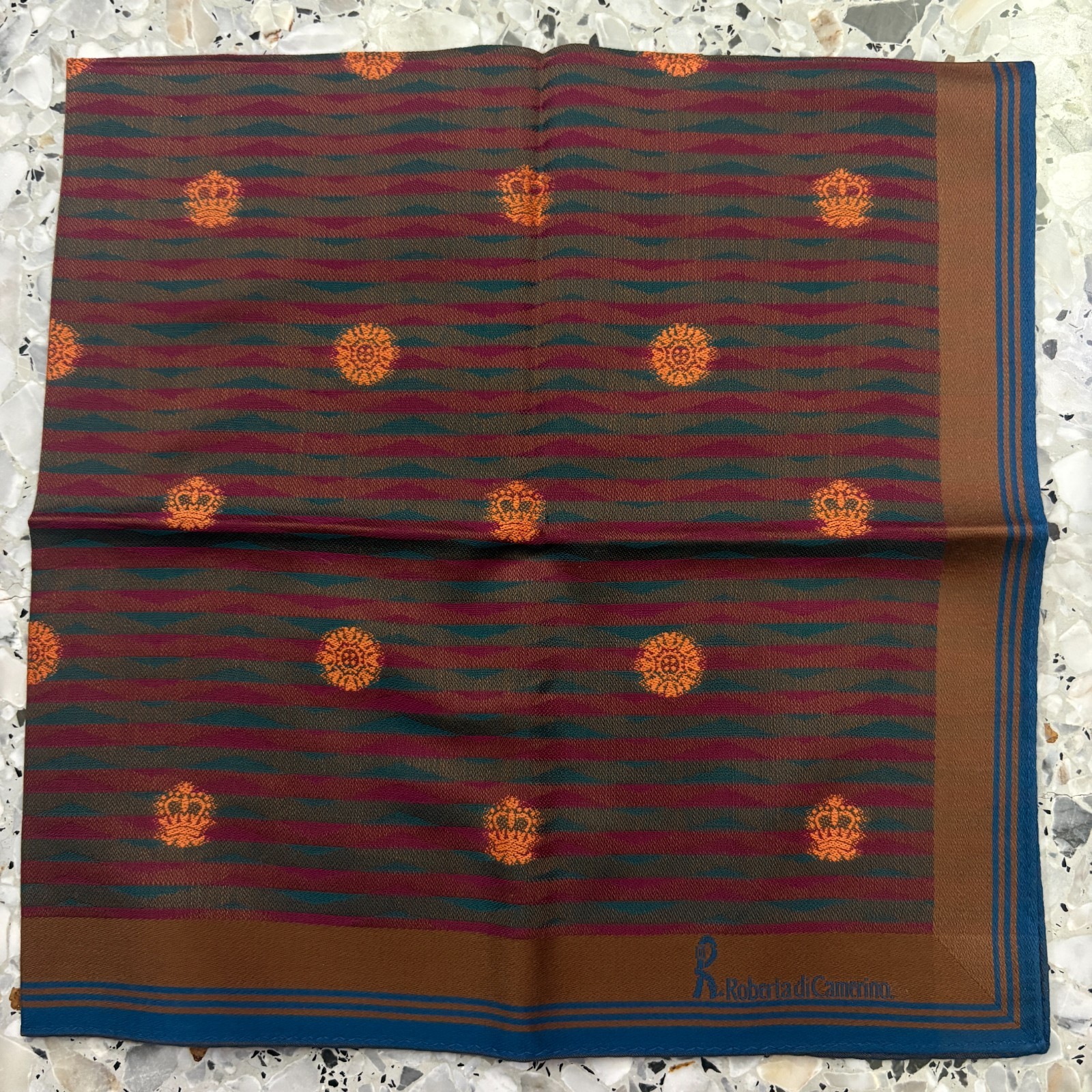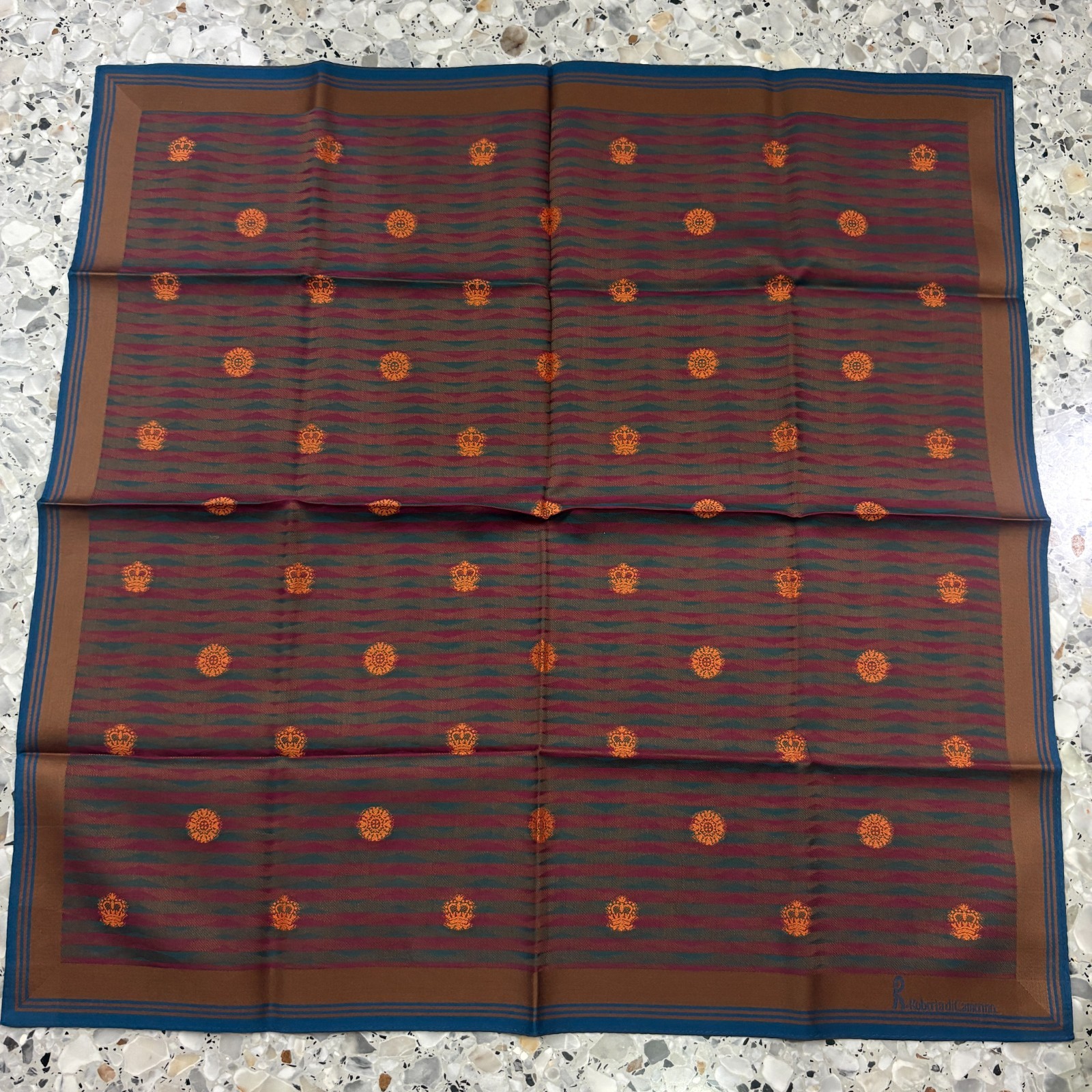 как выглядит MAN HANKY BROWN BLUE RED STRIPED CLASSIC VTG COTTON POCKET ART SQUARE 18  M314 фото
