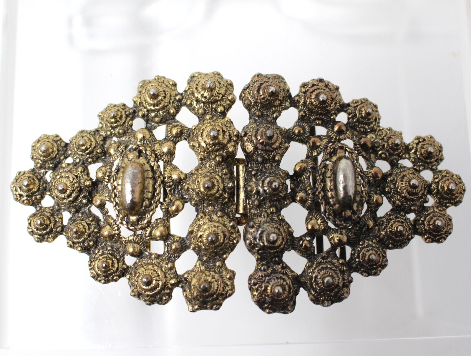 Vintage BELT BUCKLE Gold Tone Ornate 2 Piece Heavily Embossed