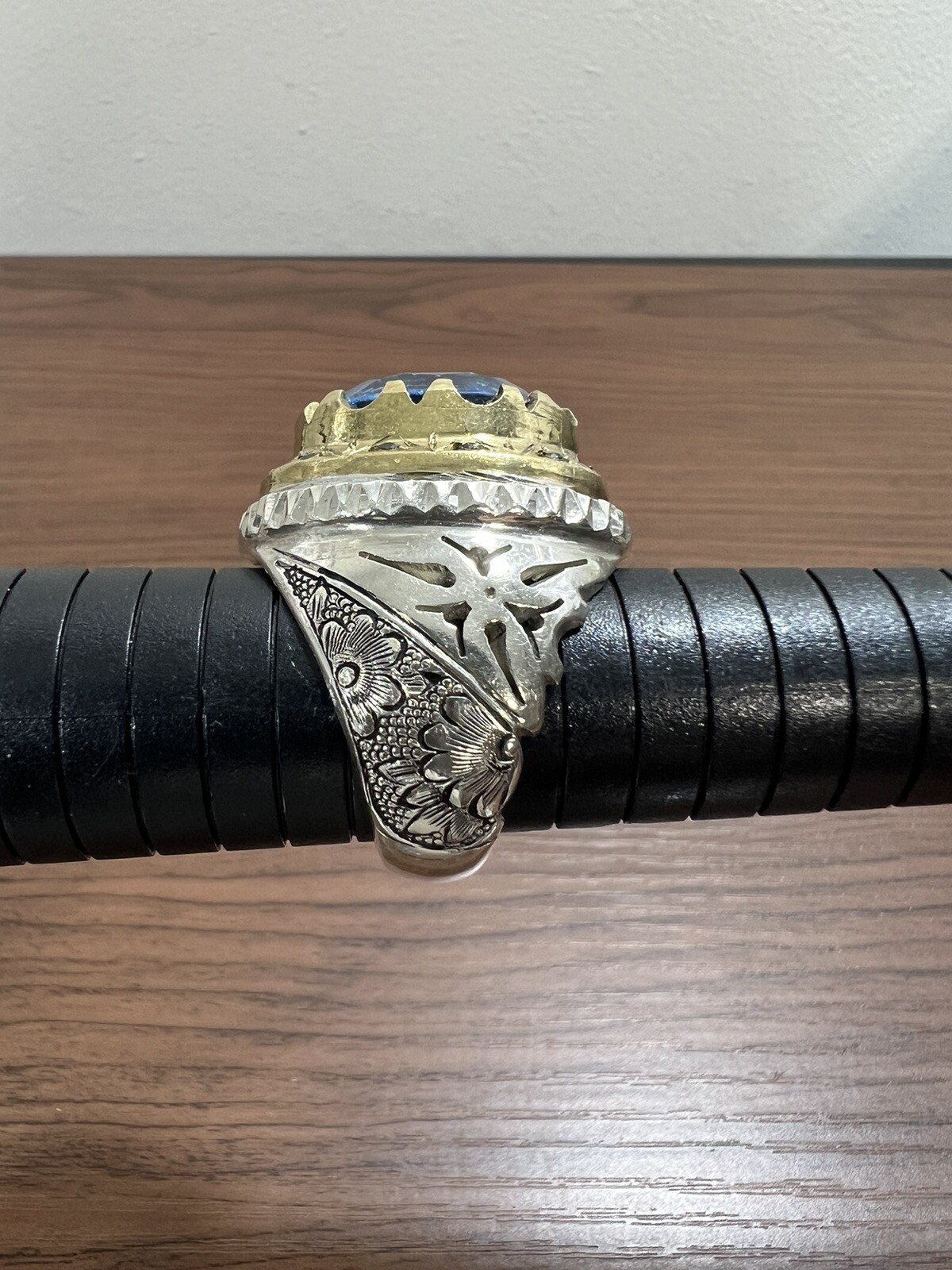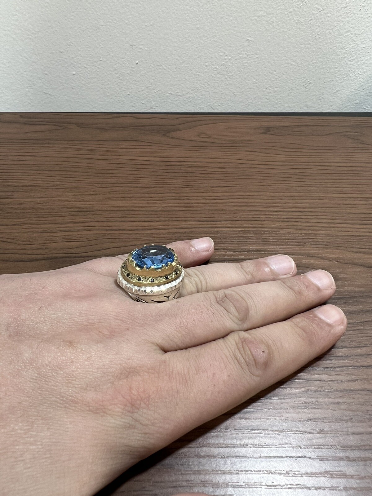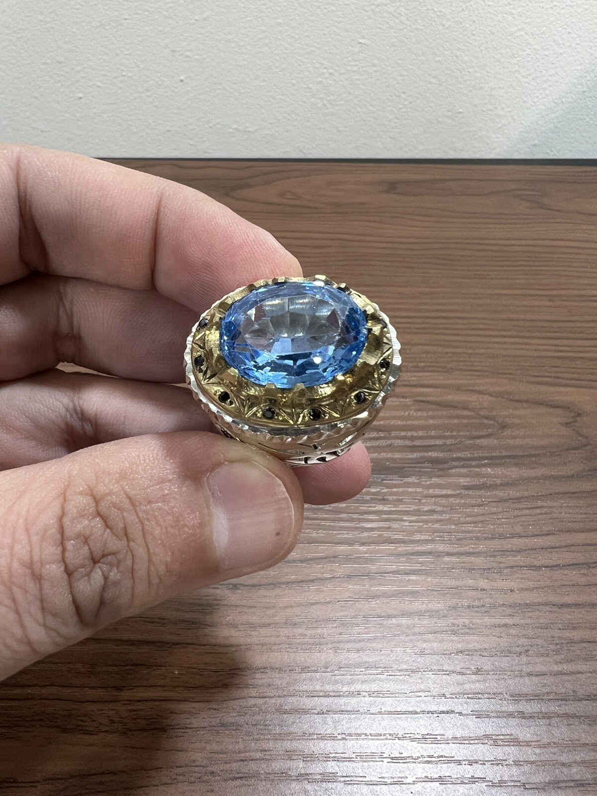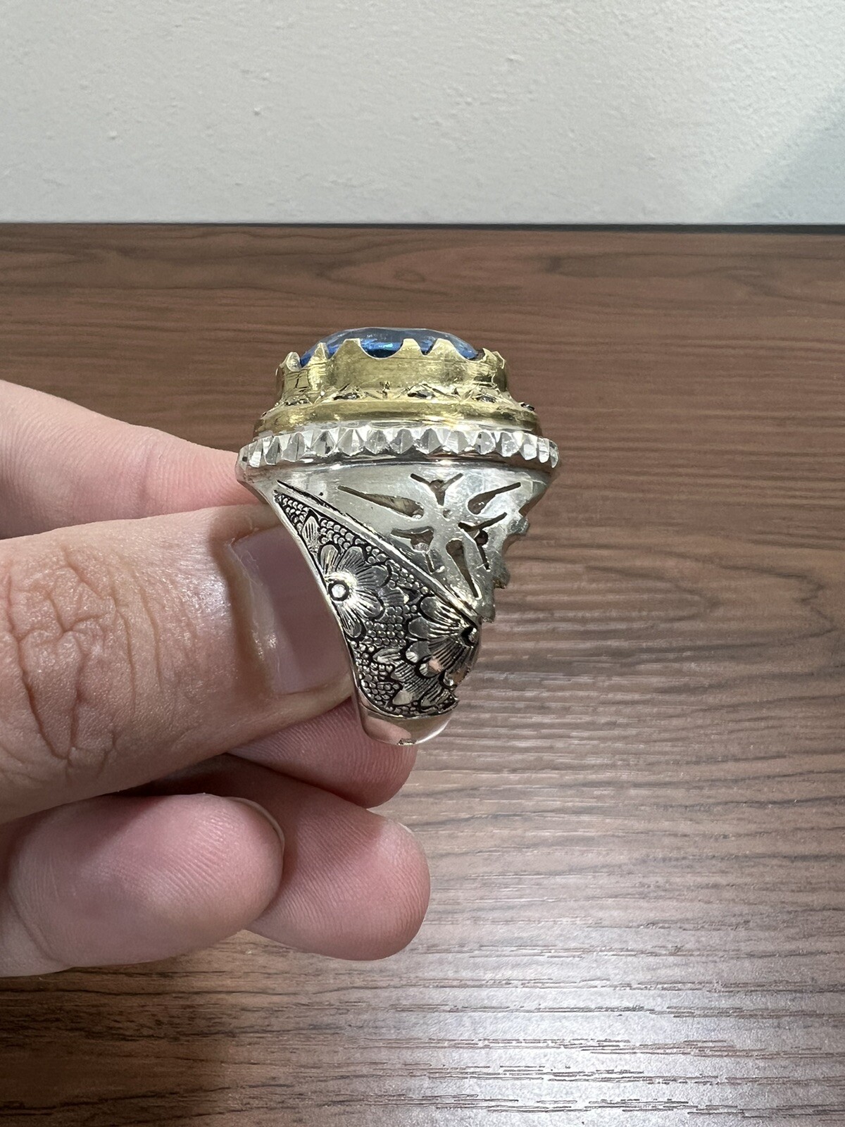как выглядит Handmade Natural Blue Swiss Topaz Sterling Silver 925 Men Ring 33 grams фото