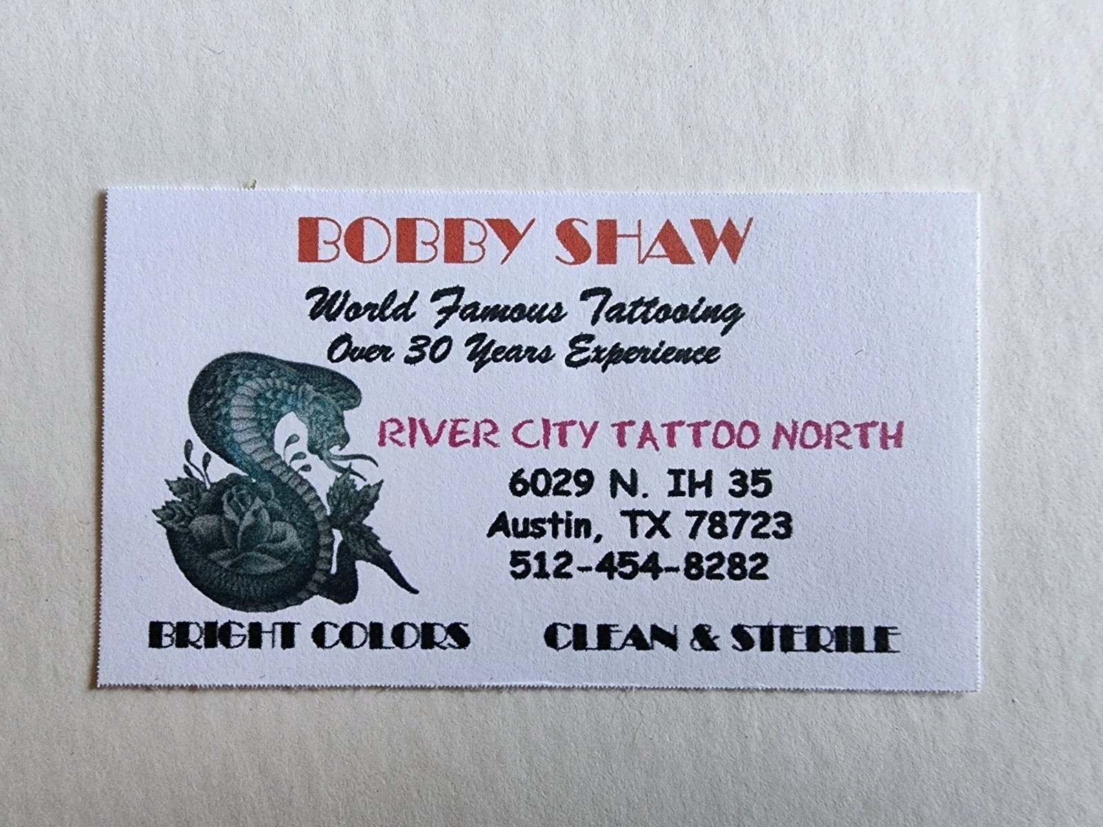 original vintage bobby shaw tattoo tattooing texas crucifix photo business card