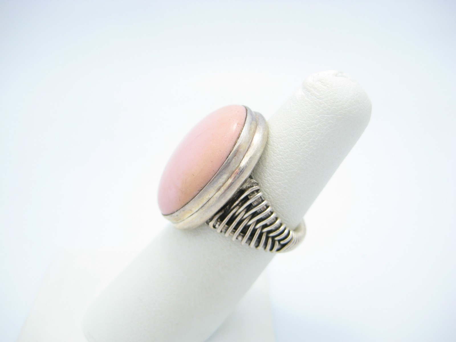 Sterling Silver India 23.5mm Oval Pink Quartz Ring Size 5.5