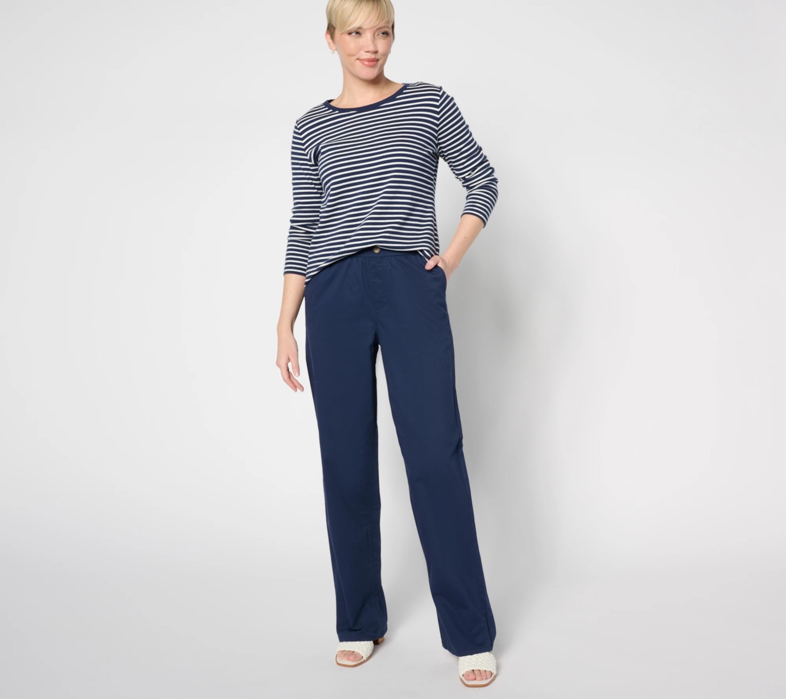 Denim Co. Regular EasyWear Twill Full-Length Wide-Leg Pants Navy XL New
