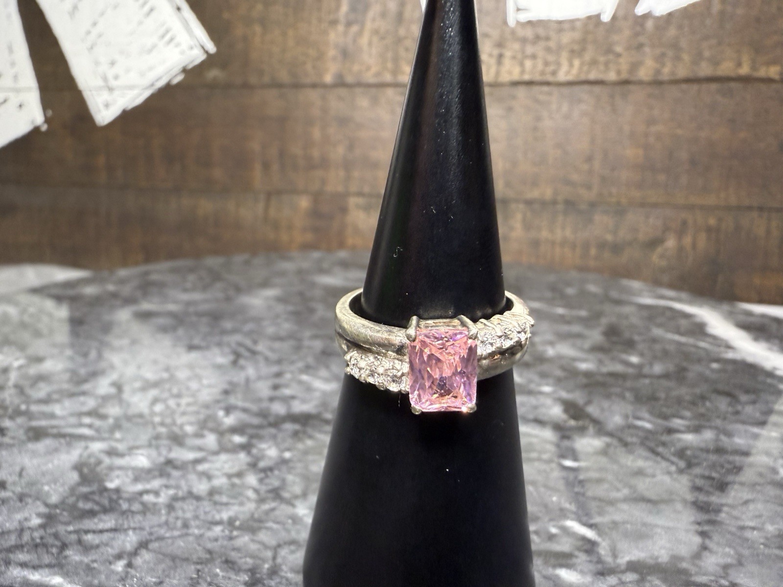 как выглядит Sterling Silver 925 Pink Stone w CZ Accents Ring Size 7 фото