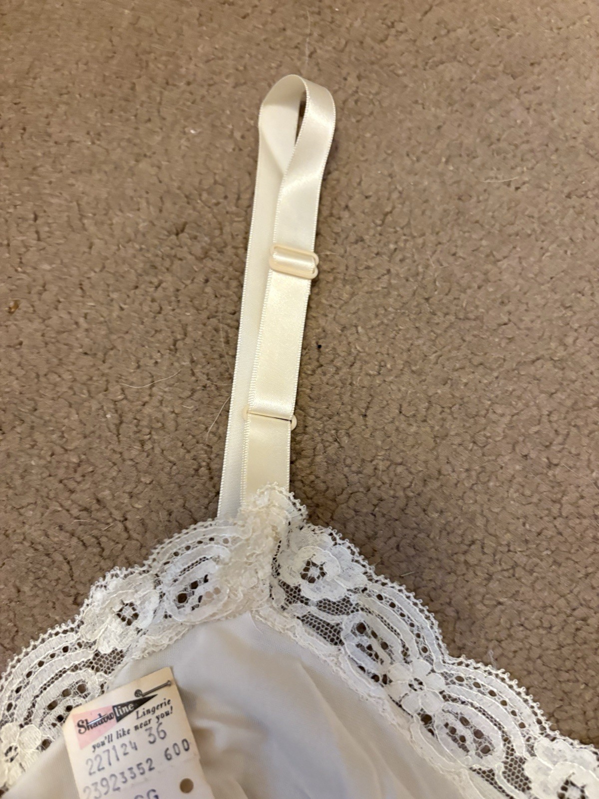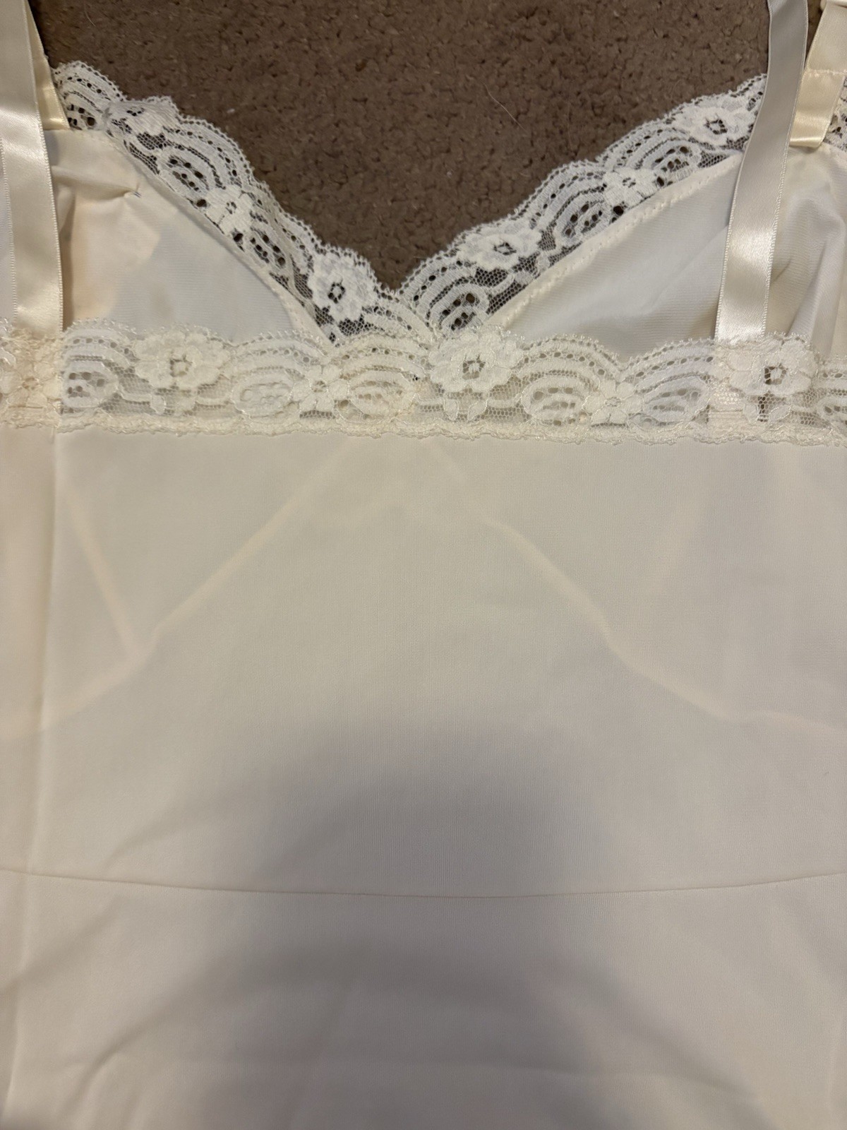 как выглядит VTG SHADOW LINE Lingerie Lace Camisole Womens size 36 - Pearl Beige 227124 NWT фото