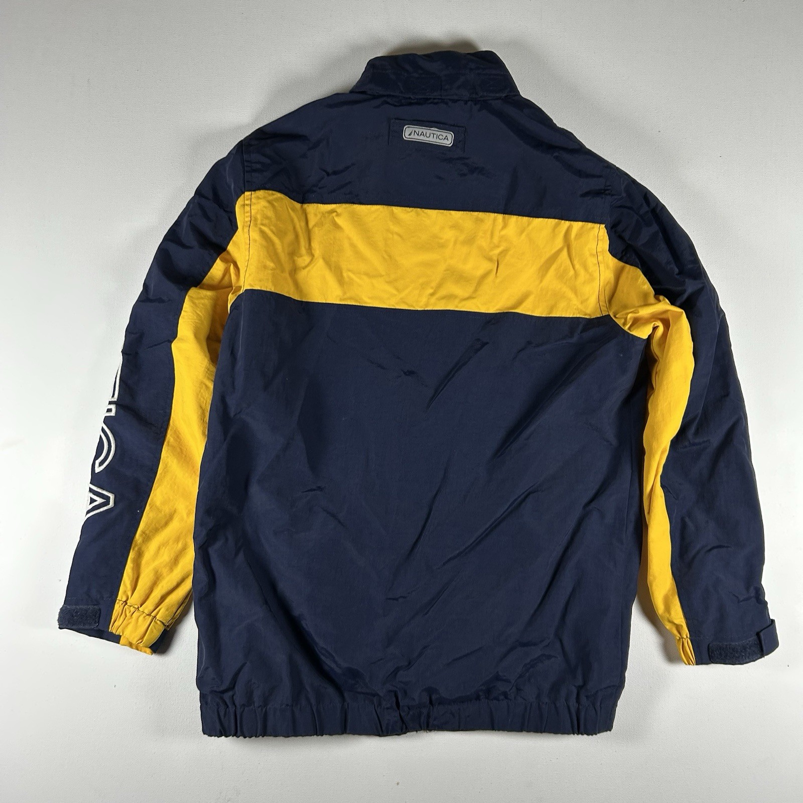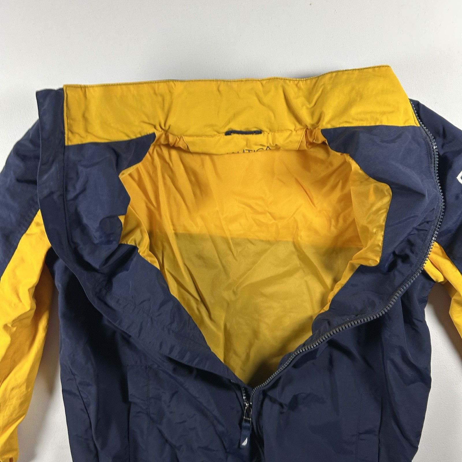 Nautica Jacket Youth Size M 10/12 Navy Yellow Nylon Lined Hooded Snow Rain