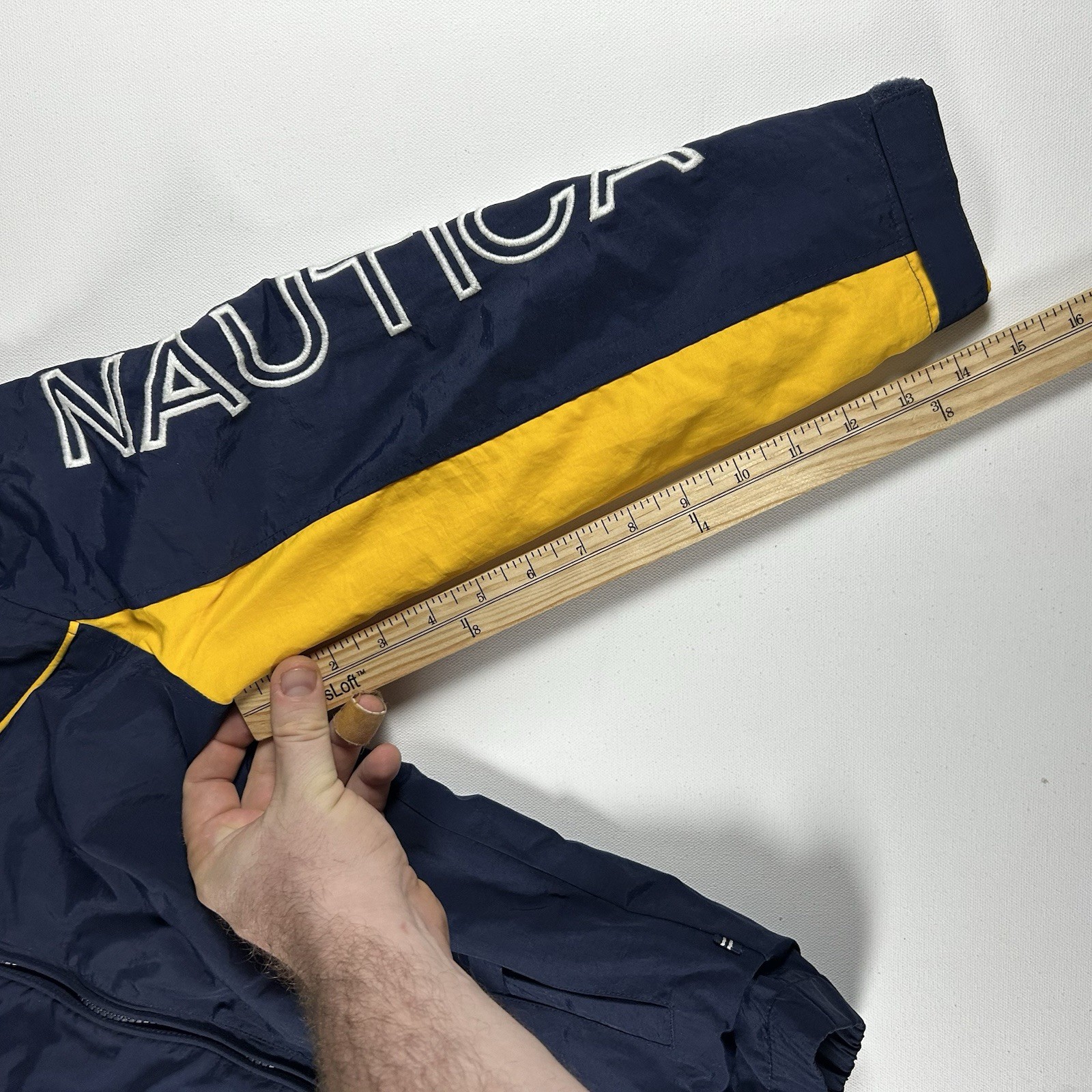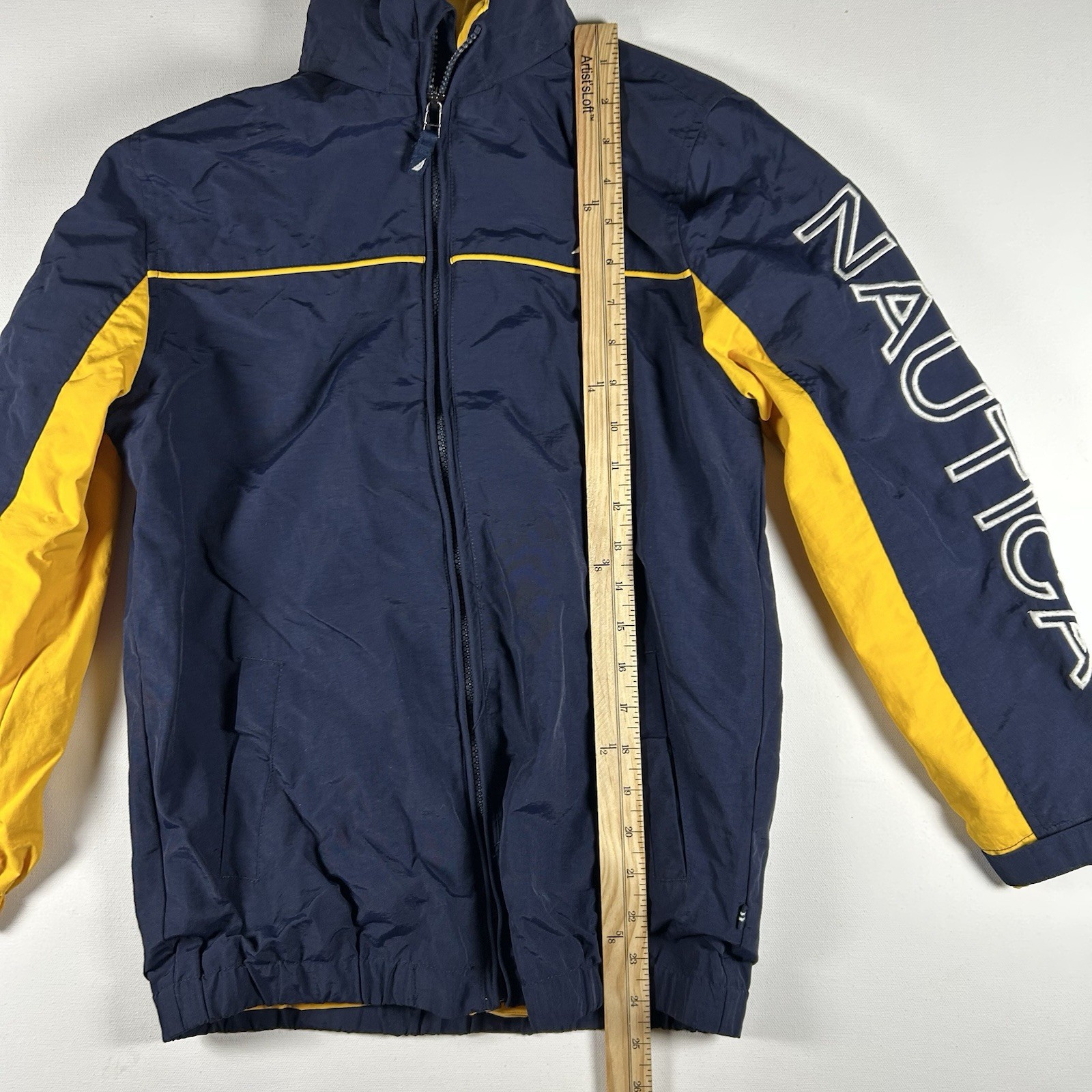 как выглядит Nautica Jacket Youth Size M 10/12 Navy Yellow Nylon Lined Hooded Snow Rain фото
