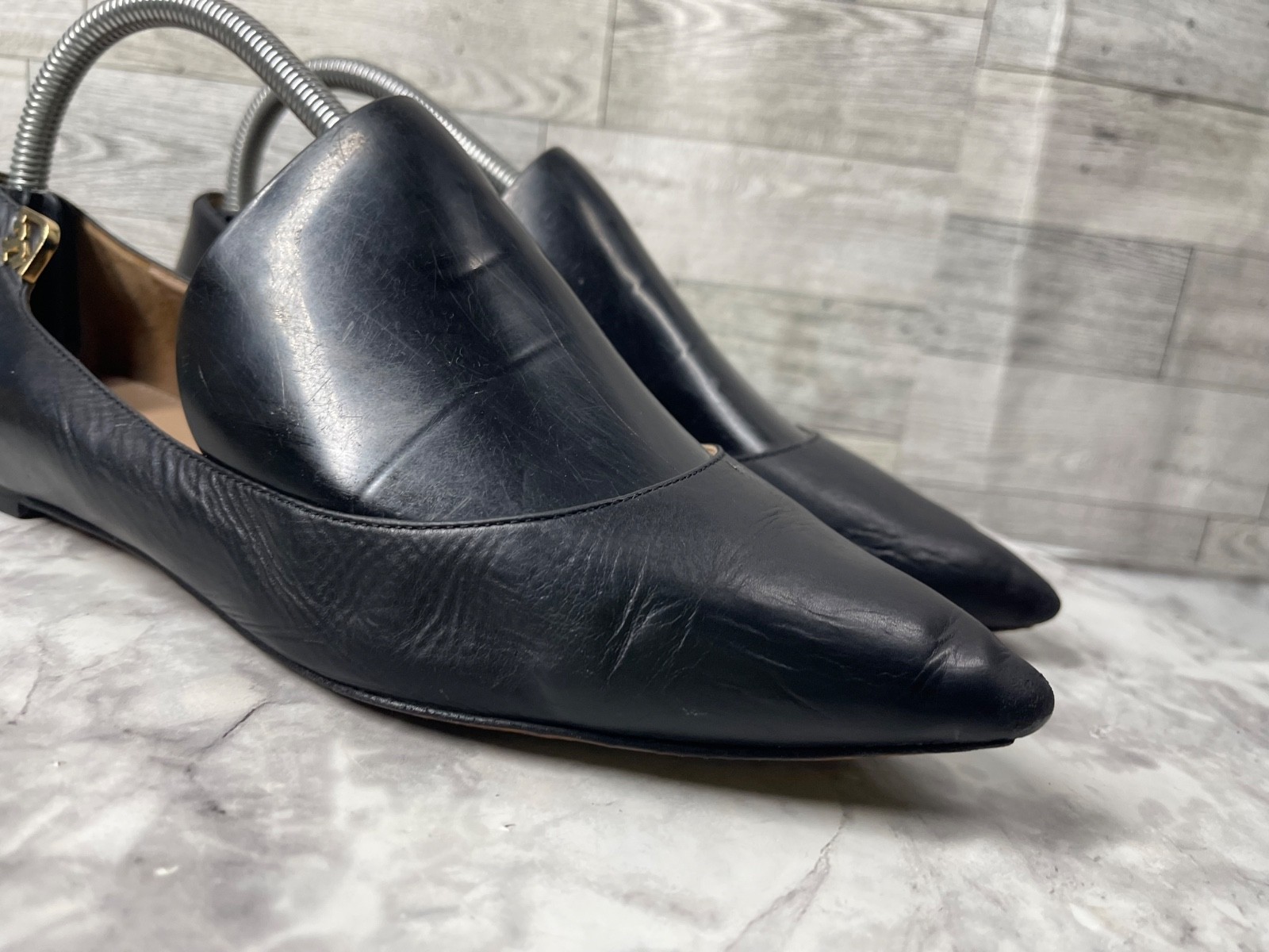как выглядит Tory Burch Ballet Flats Women 8M Shoes Black Leather SlipOn Pointed Toe Loafers фото