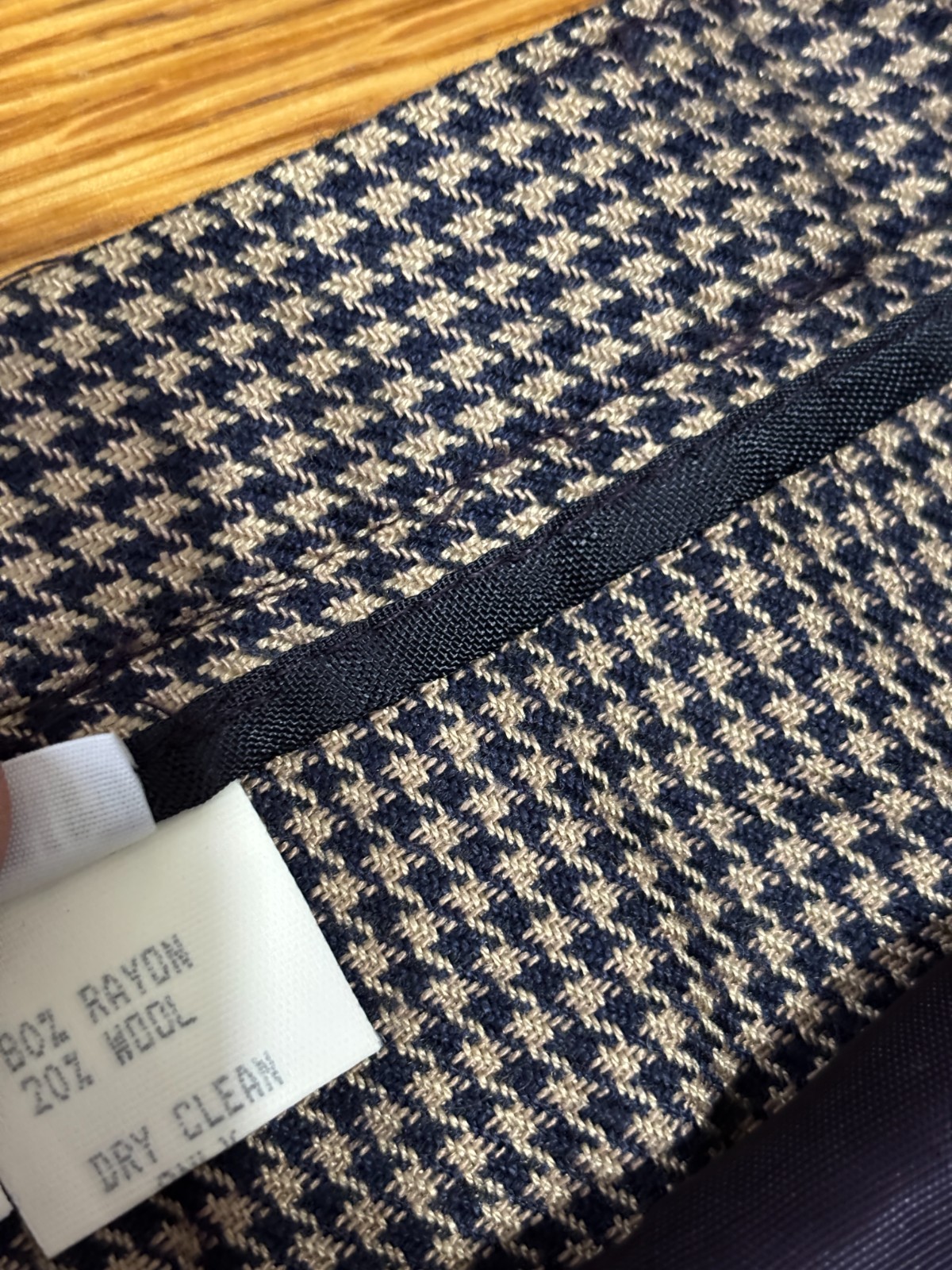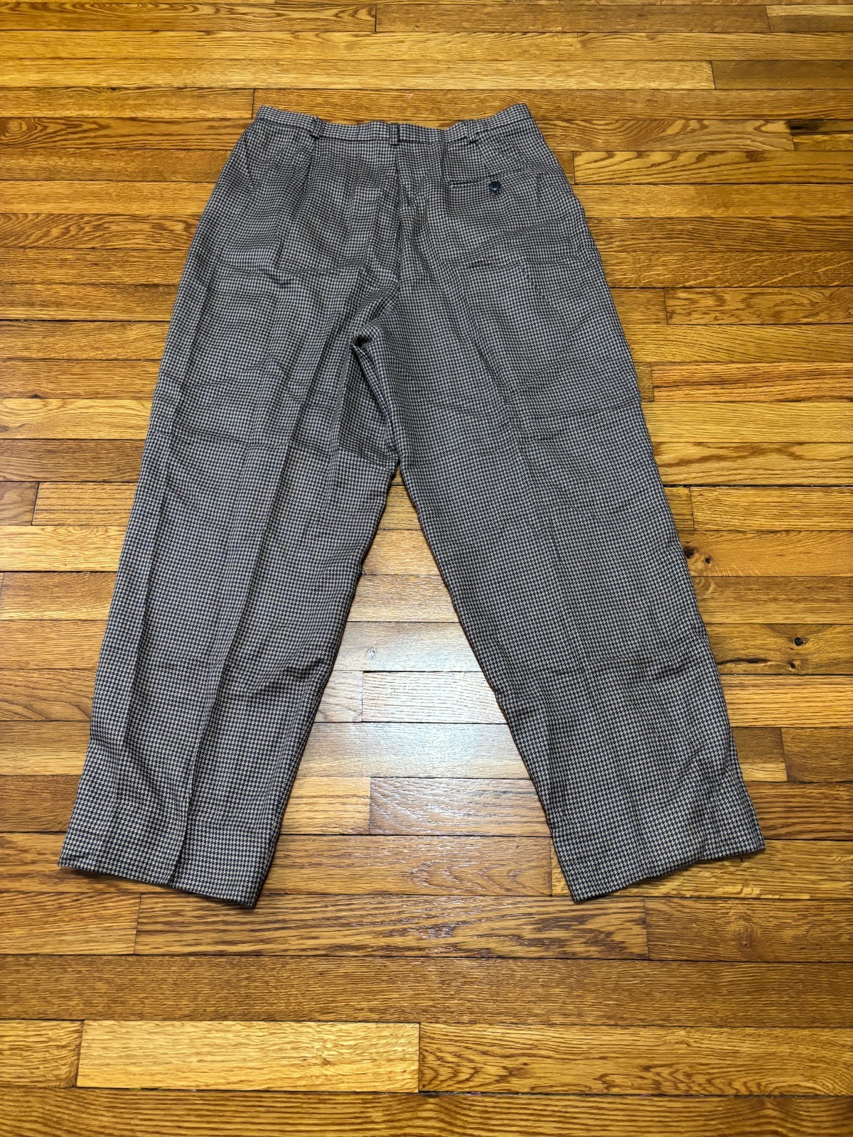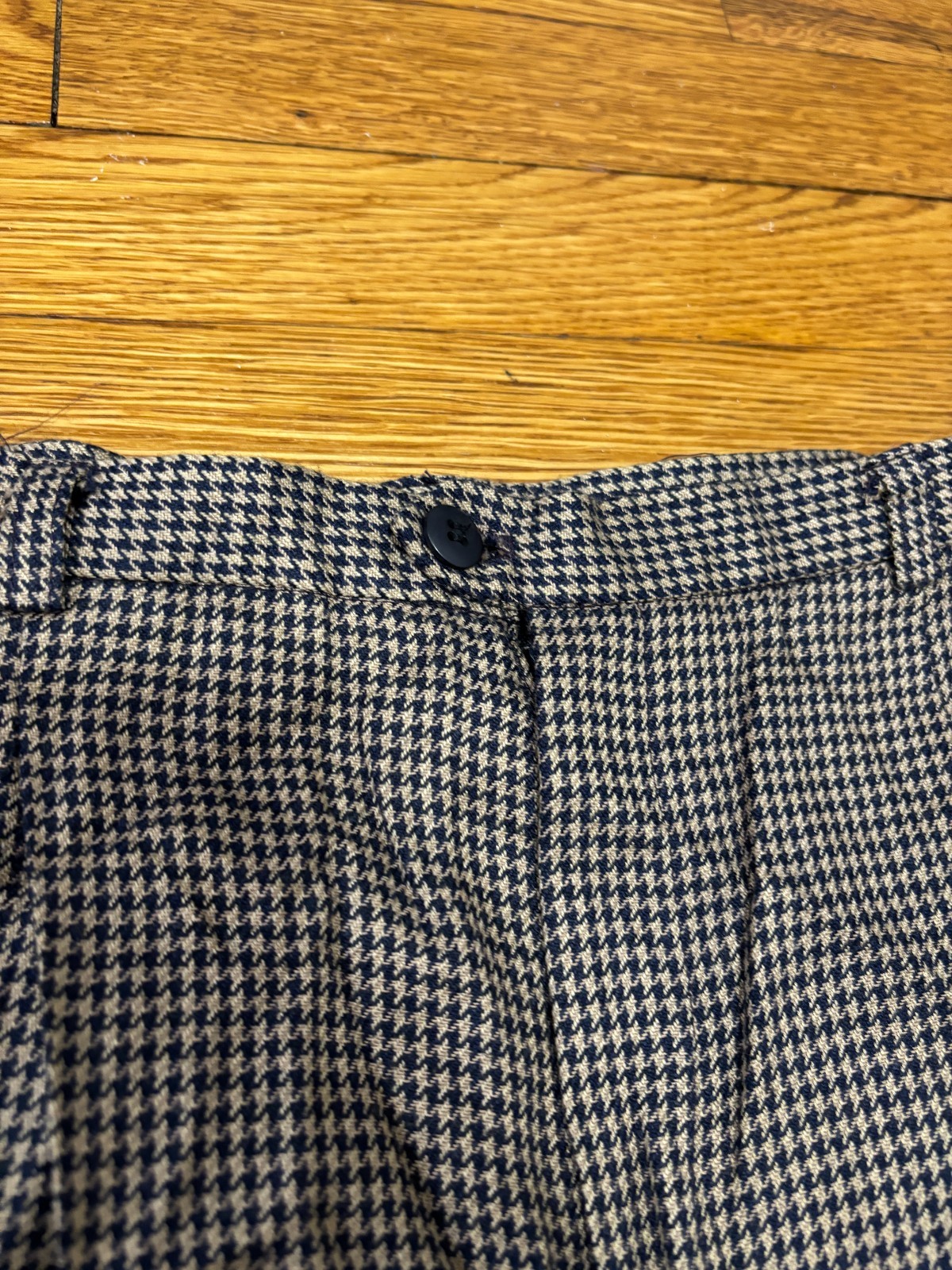 как выглядит Vintage Orvis Womens Pants Sz 16 Tan Blue Houndstooth Pleated Rayon Pool Trouser фото