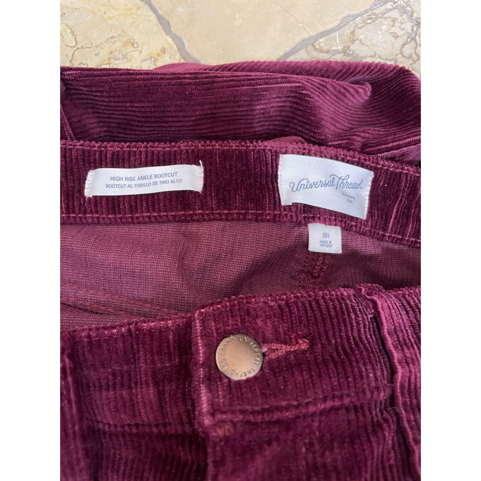 Universal Thread Womens Pants Sz 8 Corduroy Burgundy Stretchy High Waist Boho