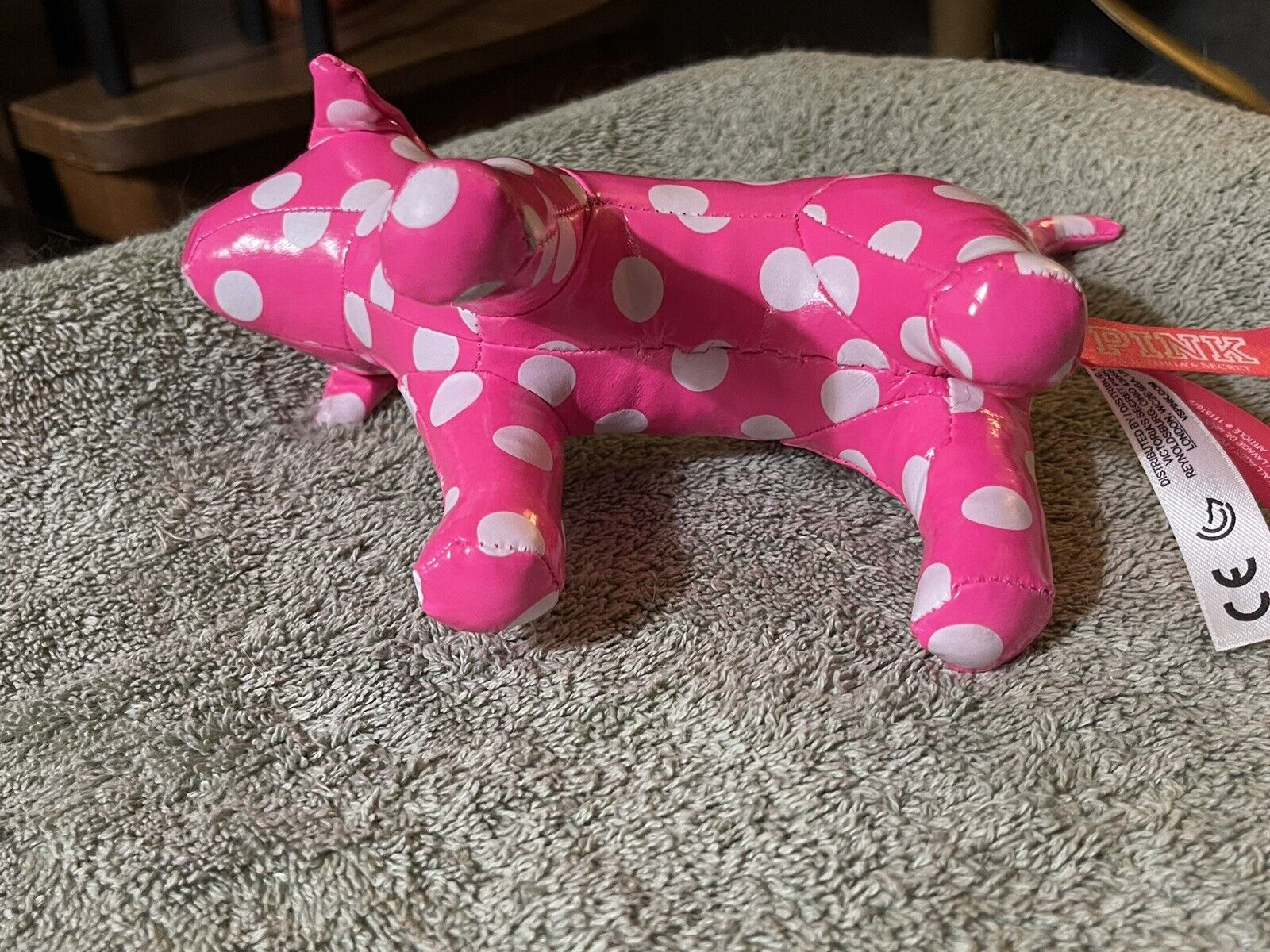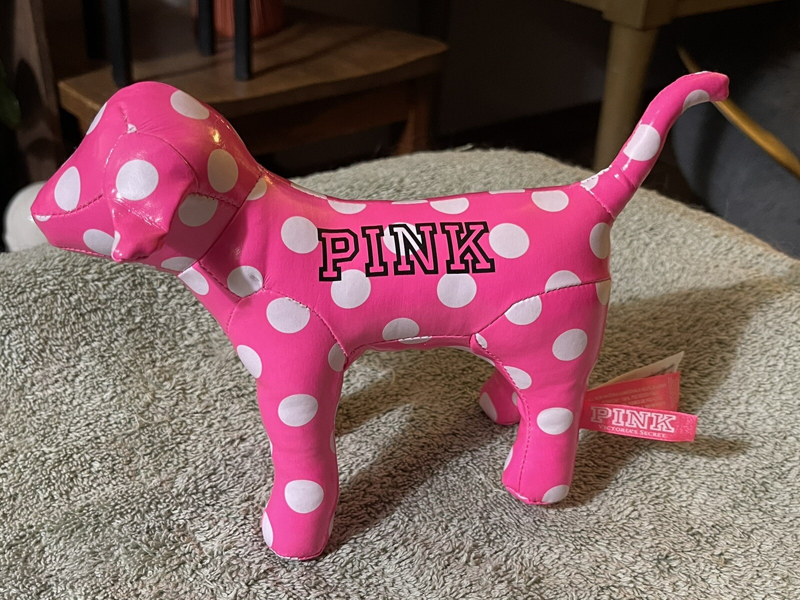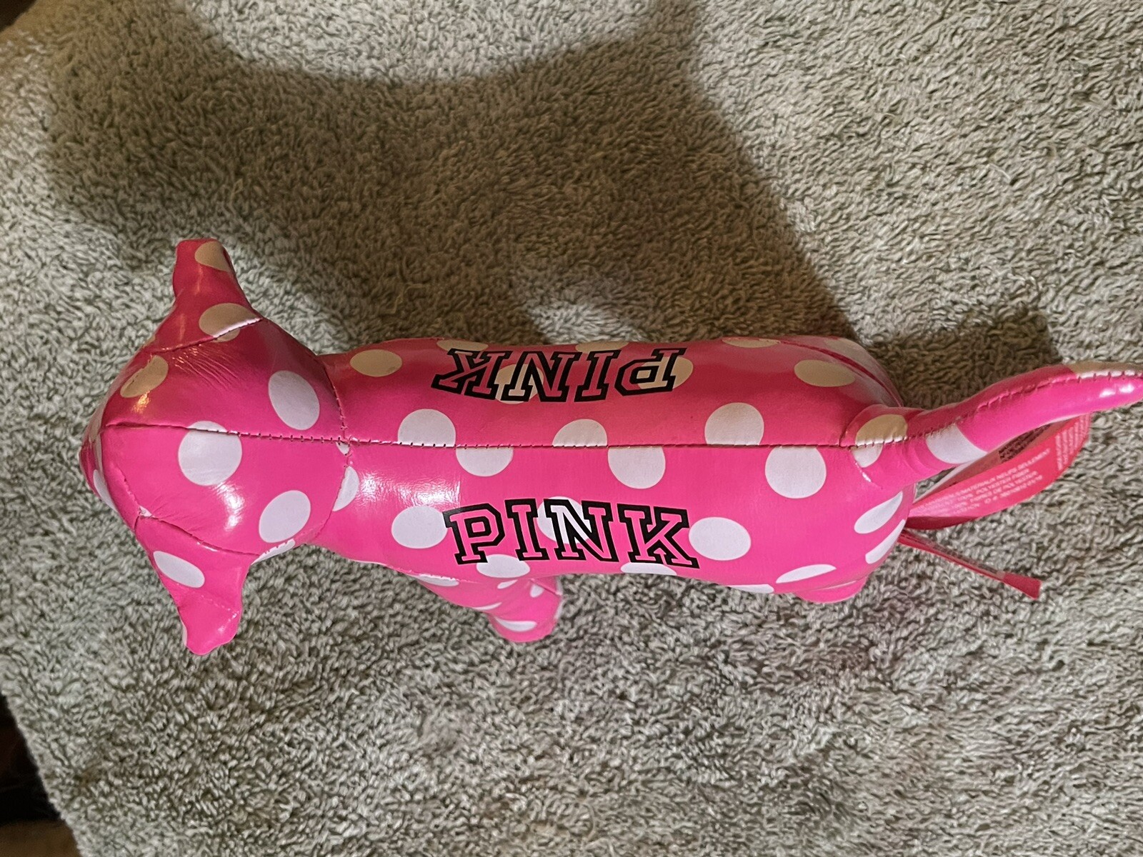 как выглядит Victorias Secret PINK Logo 6" Vinyl Stuffed Plush Dog White Polka Dot фото