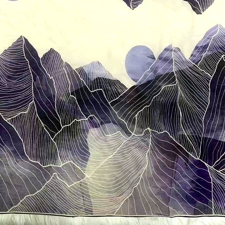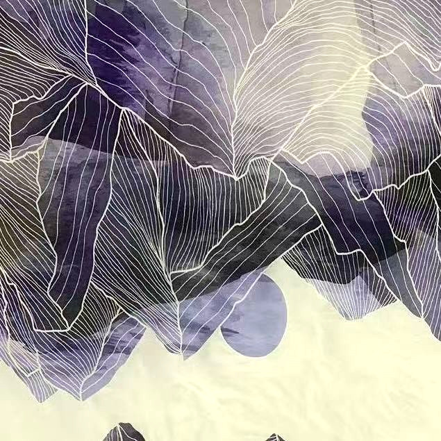 как выглядит 41"X41"Purple Mountain Print Pure Mulberry Silk Crepe Scarf 106x106cm5-5 фото
