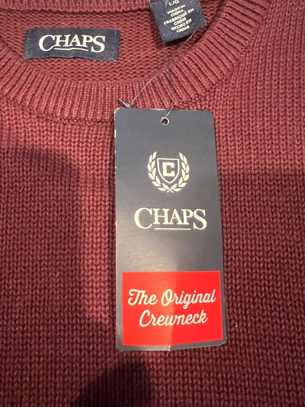 как выглядит Chaps Men Mens Burgundy Cotton Sweater Large New NWT crewneck фото