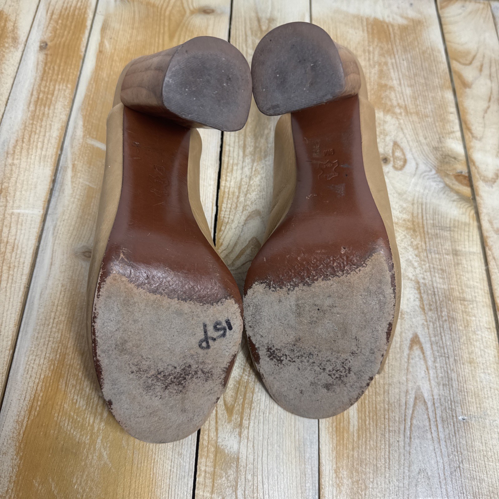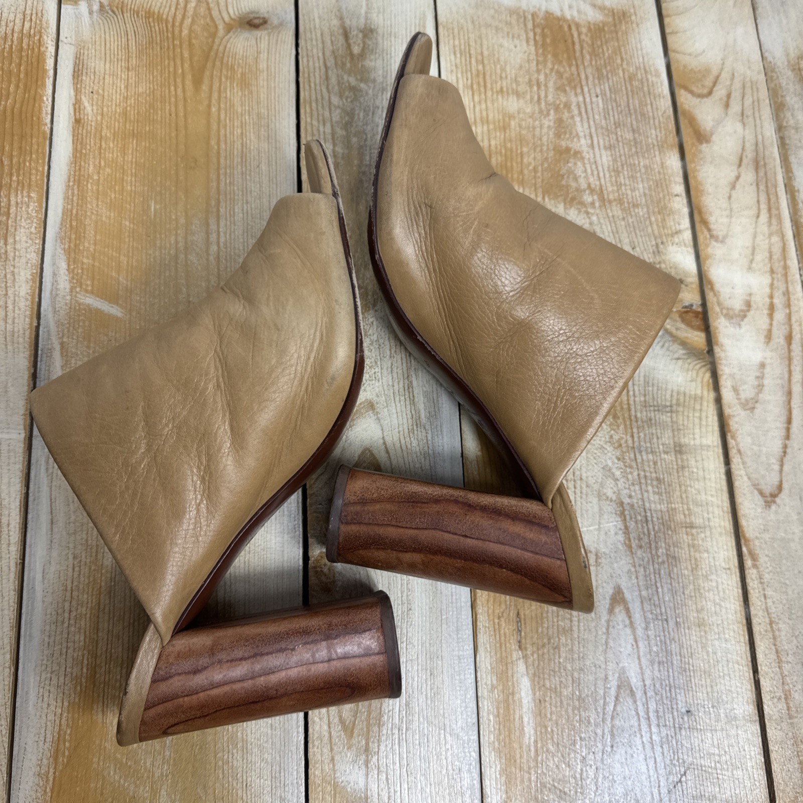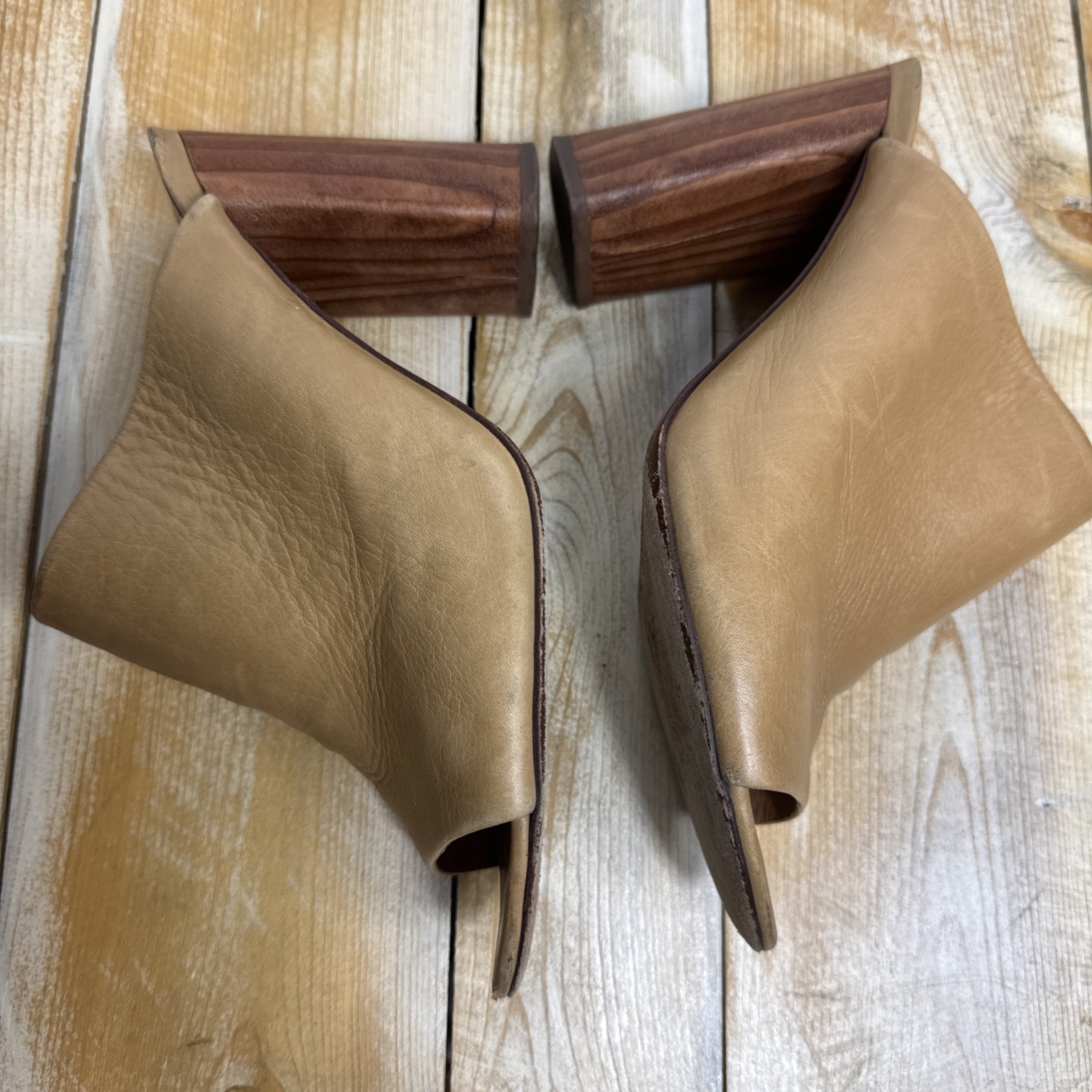 как выглядит Tory Burch Raya Mule Sandal Slide Tumbled Leather Sand Camel Tan Womens Size 9 фото